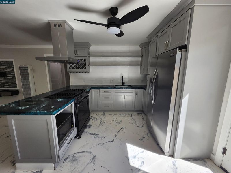 - Dishwasher, Gas Range, Breakfast Bar, Stone Counters, Disposal, Gas Range/Cooktop