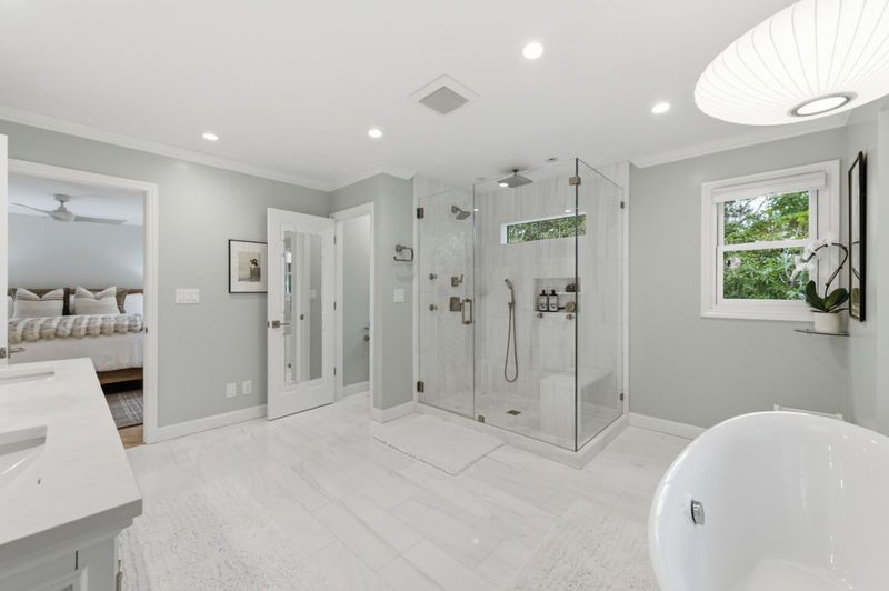 - Double Sinks, Full on Ground Floor, Marble, Primary - Stall Shower(s), Shower over Tub - 1, Skylight, Stall Shower - 2+, Tile, Tub in Primary Bedroom, Updated Bath