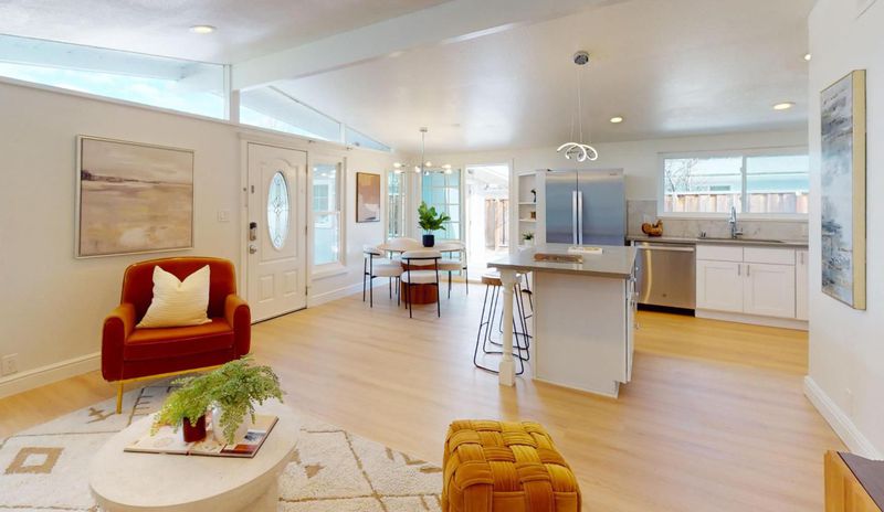 Discover the perfect blend of space and sophistication in the heart of Lakewood Village. This rarely find spacious 5-bedroom, 3-bathroom residence offers a rare opportunity for multi-generational living or a high-utility home office setup in the center of Silicon Valley. Step inside to find an airy, open-concept floor plan highlighted by vaulted ceilings and durable SPC flooring. The chef-inspired kitchen is a standout, featuring quartz countertops, a gas range, and newer stainless steel appliances. Comfort is guaranteed year-round with central A/C and dual-pane windows throughout. The massive over 8,000 sq. ft. level lot is an outdoor oasis, complete with a low maintenance turf in the front and a private backyard sanctuary featuring mature fruit trees. Minutes from Google, LinkedIn, Amazon and high tech campuses. Instant access to Hwy 101/237 and Lawrence Expy. Just blocks from Lakewood Elementary and the newly renovated Lakewood Park. This is more than a home; its a strategic investment in one of Sunnyvales most vibrant communities. Don't miss the chance to own a move-in-ready 5-bedroom home where space is never a compromise.