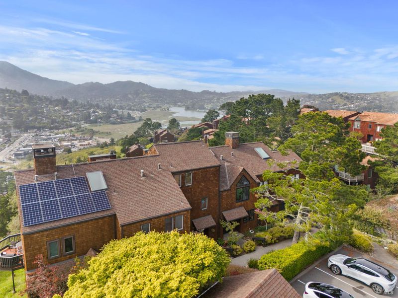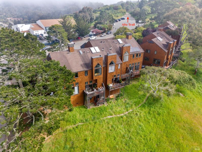Peaceful nature retreat tucked in the Marin Headlands. This quiet, west facing townhome offers sweeping views of Mt. Tam and beyond from both the main level and primary suite. Just steps from the Alta trail and world-class hiking of Sausalito. A rare lifestyle immersed in nature yet only minutes from the city. Inside, this spacious home has high ceilings and great natural light throughout. Newly remodeled, sleek modern kitchen with outlooks to the lush garden entry. Open flowing layout is perfect for entertaining. The living room enjoys a cozy wood-burning fireplace, incredible views from the oversized windows, and a sunny private deck. New wide plank flooring installed throughout the main level. Flexible floor plan includes 3 beds plus a bonus office loft and 2.5 baths. Primary suite enjoys vaulted ceilings and bathroom with dual vanities. The lower-level bedroom features its own entrance, ideal for guests or potential rental income. Complete with upgraded windows, ample storage, side by side laundry, and 1 car covered parking. Siding and deck both recently painted by HOA. Idyllic Sausalito living with unmatched convenience to the best of Marin & San Francisco.