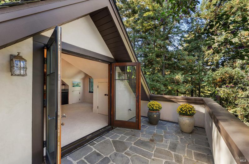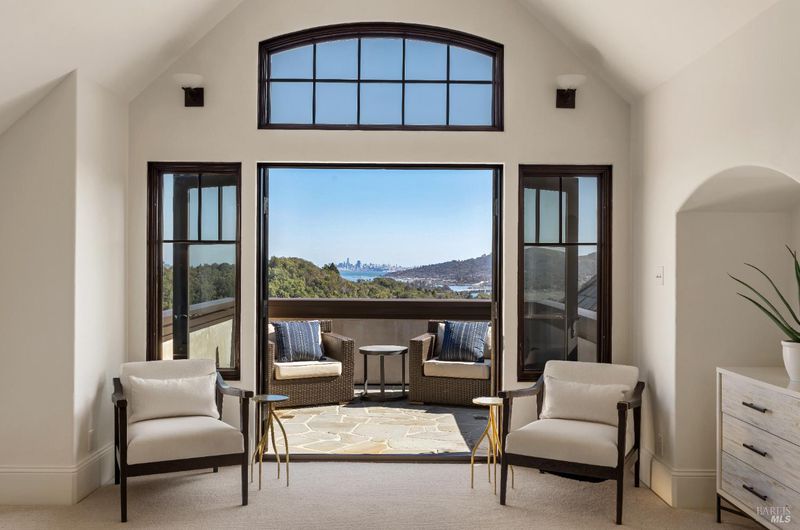 Extraordinary Mill Valley residence in a private gated enclave. This European inspired home is perfectly sighted with sweeping water, city, and open space views one mile from a vibrant downtown. Impressive interiors roll to outdoor living across multiple stone terraces surrounded by lush, mature growth. Expansive entry with soaring beamed ceilings opens to living, dining, and family rooms served by a luxurious chef's kitchen. The grand staircase leads to a dreamy primary suite upstairs, and generous ensuite bedrooms, a rich media social room & private office downstairs. The motor court fronts a large garage with studio residence above. Completed late 2003 as a build of unparallelled quality by Jim Kelly/Kelly Pacific and designed with no detail overlooked by Jessup Associates Architects. Slate roof, Venetian plaster walls, heated hand hewn herringbone wood floors, massive doors and figured hardwood cabinetry only start the list. Beyond the driveway, you're immediately on to Blithedale Ridge's extensive scenic hiking trails, or down a simple path to Mill Valley golf course, swim & tennis club and downtown. This gracious residence lives and entertains with impressive scale and pride of ownership, while maintaining a relative intimacy ideal for day to day living.