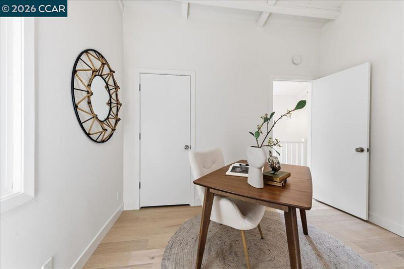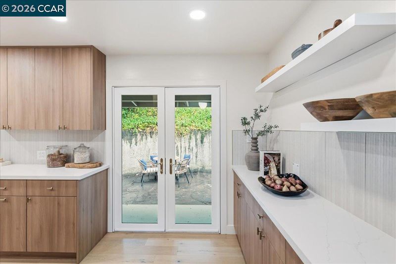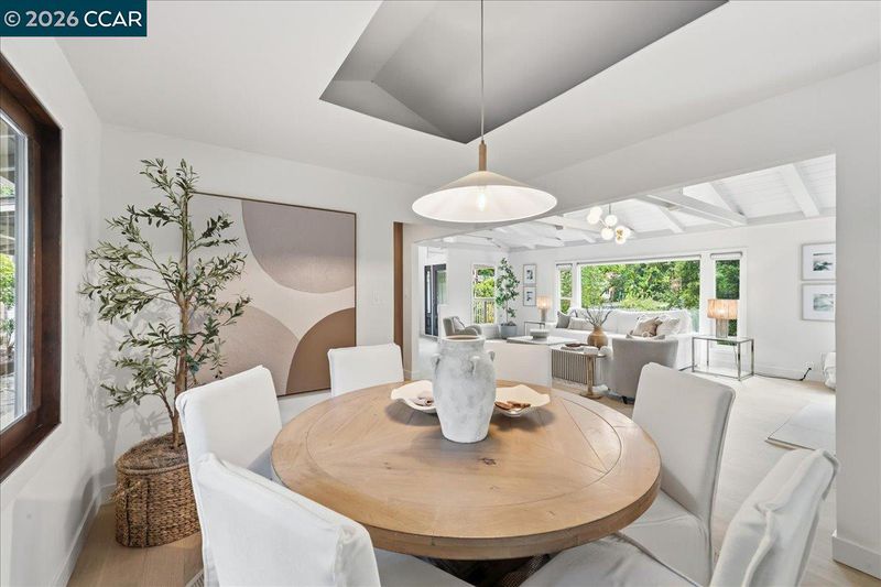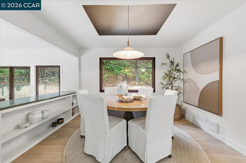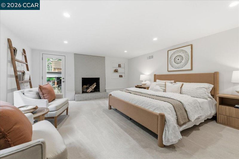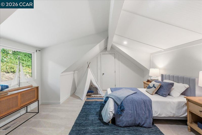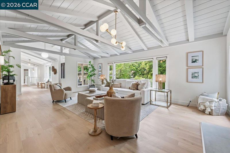 Tucked on a private Lafayette hillside among majestic oaks, this home offers a peaceful retreat with rare walkability to downtown, BART, dining, groceries, and top rated schools. New engineered hardwood flows through most of the home. The main level offers distinct yet open concept living, dining, and family rooms. The redesigned and remodeled chef’s kitchen boasts a new layout, custom European slab cabinets, quartz counters, a designer tile backsplash, and premium Wolf, Sub Zero, and Bosch appliances. This floor has three bedrooms, one with backyard access ideal for guests or extended living, and a remodeled bath with Pottery Barn and West Elm finishes. Upstairs, a loft bedroom provides a private escape. Downstairs, the primary suite offers a sitting area, laundry, a full bath with a jetted tub, and outdoor access. On a nearly 1/2 acre lot, the property features new paint across the entire exterior, including decks. Newly landscaped grounds include patios and a new backyard retaining wall. Additional upgrades include a new paver driveway and finished garage with a new door, silent motor, and EV charger outlet. Accessed by a private road, the home includes convenient extra parking at the bottom of the hill. Turnkey and move in ready in Lafayette’s Tanglewood neighborhood.