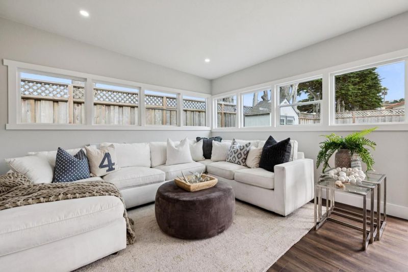 Let the story begin with Curb Appeal. A coastside gem, absolutely stunning to see, exploding with character and charm. Situated on a large 7278sf lot at the end of the road, one can only imagine the enjoyment and comfort it promises. 1066 SF+/- primary residence plus 281 SF+/- multi purpose-sunroom. Colorful peaked roofs, distinctive landscaping, sweeping paved driveway, shuttered windows, and raised entrance. Gleaming hardwood floors with an explosion of natural light throughout. Easy flow to the kitchen with its stainless appliances, stylish counters and plentiful cabinetry, highlighted with a wonderful view of the private yard. On one side of the home rests three delightful bedrooms, comfortable in size with convenient access to the spacious hall bath. Additional half bath and bonus multi purpose room with an array of windows and a glass door opening to the sprawling yard. Park-like backyard with real grass, pavers and gravel walkways filling the space. New electrical (2022) new roof (2022), recessed lighting, dual pane windows and EV charger. Attached oversized 2 car garage. An overall remarkable location, near schools, shopping, hiking trails, beach access and transportation, this home is perfect for the everyday enjoyment of coastside living. A must see!