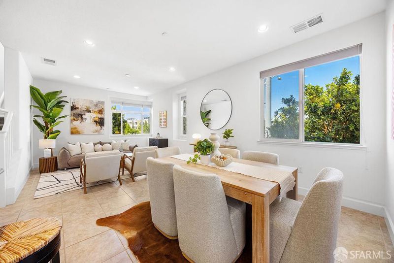 Built in 2015, this bright corner tri-level townhome-style condo offers 2 bedrooms, 2.5 bathrooms and 1,251 sqft of well-designed living space. Expansive windows bring in natural light, complemented by recessed lighting and central A/C. A private entry leads to an attached 2-car garage with built-in storage. The main level features open-concept living with a modern kitchen complete with a large granite island, wood cabinetry, tile backsplash, stainless steel appliances, gas cooktop, and pantry, plus a convenient half bath. Upstairs, both bedrooms offer ensuite privacy, including a primary suite with a walk-in closet. A laundry closet with a stackable washer and dryer adds everyday ease. Ideally located near shopping, dining, parks, and trails, with easy access to Dublin/Pleasanton BART Station, H Mart, Whole Foods Market, Target, Costco, and easy access to Highways 580 and 680. This home blends comfort, convenience, and modern living.
