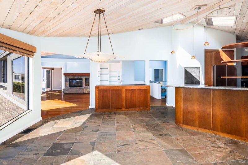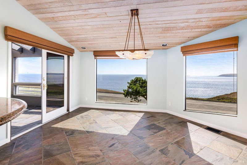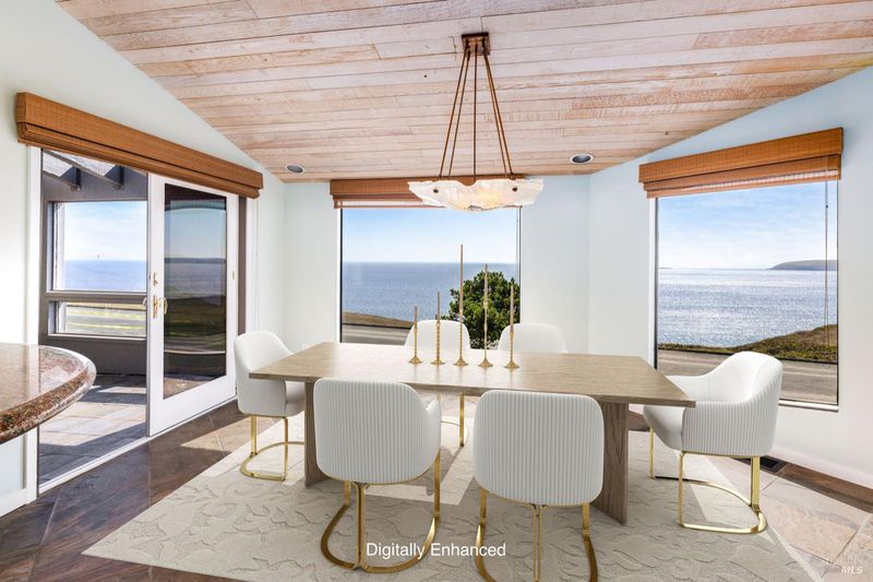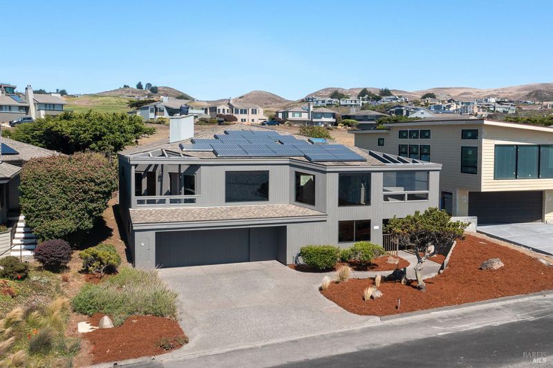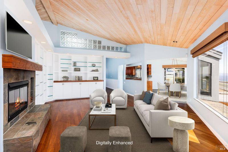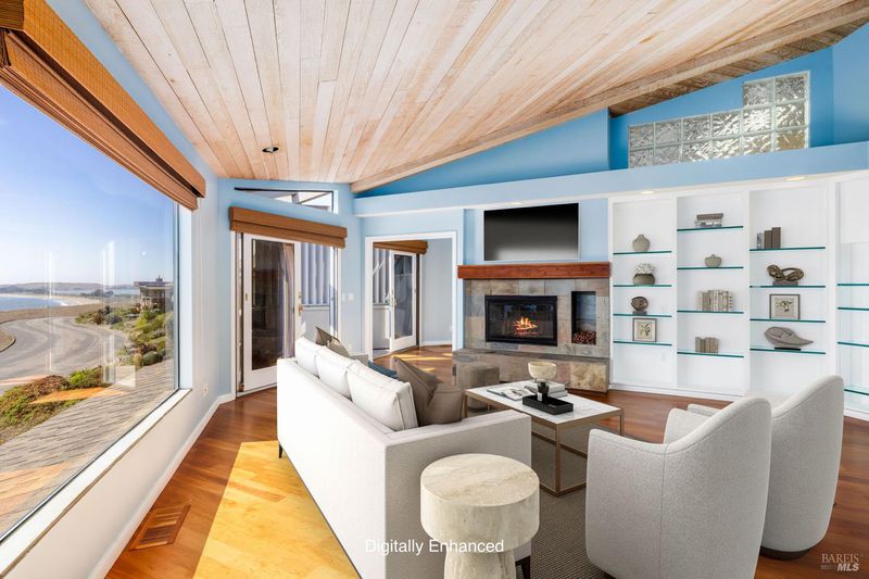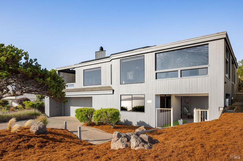 This custom contemporary home enjoys an enviable oceanfront location. Indulge in incredible panoramic views showcasing the Pacific and bay, Bodega Head, Seal Rock, and the distant Marin landmarks of Tomales Point and Point Reyes. Ascend a skylighted staircase to a light-filled and spacious living area. A double-sided wood-burning fireplace is shared by the living room and den. The culinary center will satisfy the pursuits of the resident gourmand with space to create and invite others to participate. Oversized windows frame captivating vistas. Two view balconies provide an opportunity to step into nature to stargaze or listen to waves crashing on the beach below. Tucked away in a quiet corner, the primary bedroom with bath en suite has access to a stone patio and is just steps from the spa tub. In an opposite corner is a guest bedroom and a full guest bath. The third bedroom on the lower entry level would comfortably accommodate a home office, gym or media center. An additional full bath, in-room laundry and two-car garage complete the lower level. This impressive abode enjoys access to the clubhouse and pro shop of this golf community which offers amenities that include a restaurant and bar, exercise room, sauna, heated pool, tennis, bocce, basketball, and beach trails.