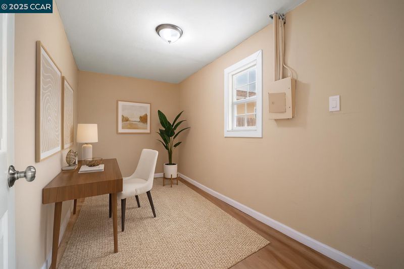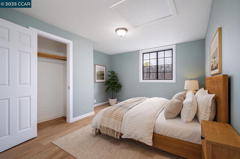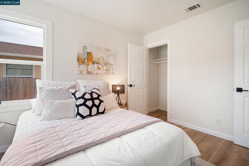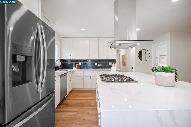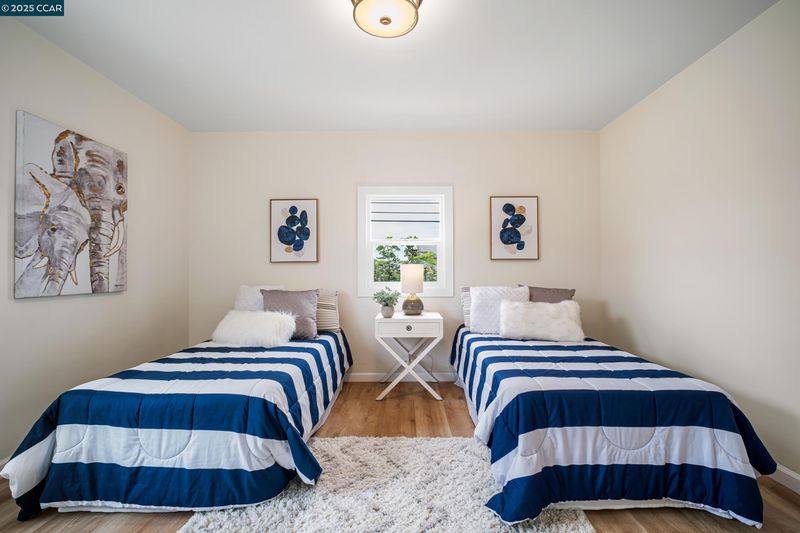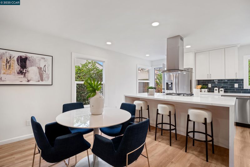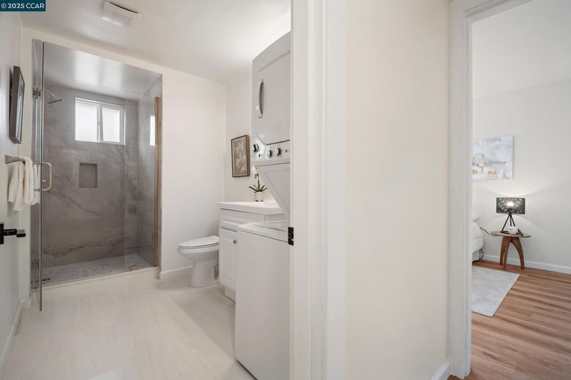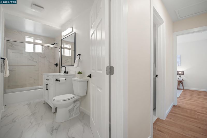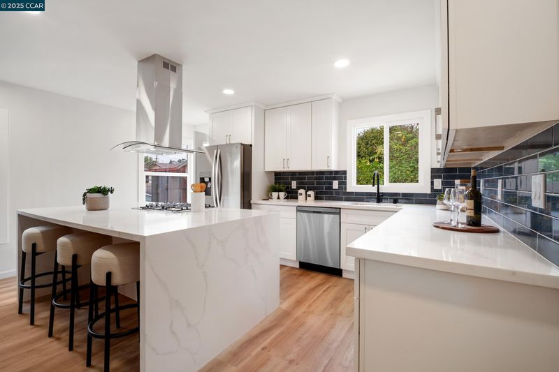 Step inside this beautifully updated San Leandro home offering 3 bedrooms and 2 stylishly renovated bathrooms in the main house. Newly painted inside and out, and recently updated with new flooring, lighting, + much more! This home features a light-filled living room with cozy fireplace that flows into the dining area and stunning kitchen. The kitchen is designed for both cooking and entertaining, complete with white shaker cabinets, a statement blue tile backsplash, stainless steel appliances, a floating hood, and a gas range for every culinary delight. The expansive quartz waterfall island doubles as a breakfast bar for casual seating. Unwind in either spa-like bathroom, choose from a walk-in shower or luxuriate in the tub. The generous bedrooms provide comfort and flexibility for your needs. Step outside and find inviting yards with mature fruit trees, garden beds ready for planting, a private well, and a serene seating area. This home also includes a 630 SF detached ADU with a flexible 4th bedroom, 3rd full bath, living area, and office, perfect for extended family, guests, or rental income. Located near Lake Chabot, parks, shopping, dining, commuter routes and transit, this home blends modern style with everyday functionality. Come experience all this San Leandro gem offers.