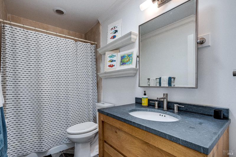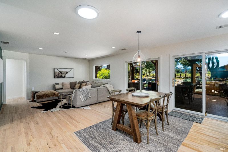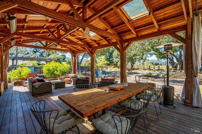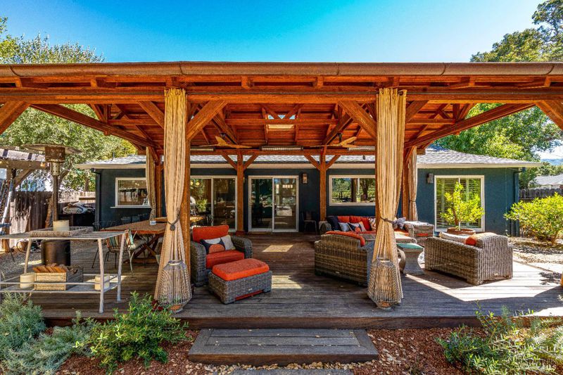 Tucked away on nearly half an acre and backing directly to vineyards, this beautifully remodeled 2-bedroom, 2-bathroom home offers the perfect blend of privacy, elegance, and functionality. Towering oaks frame the expansive yard, while a stunning IPE wood deck with vaulted cover, overhead fans, and vineyard views creates a showstopping setting for outdoor entertaining. Inside, a custom kitchen with designer finishes anchors the open-concept living space, designed for seamless indoor-outdoor flow. A detached party barn with its own kitchen adds flexibility for guests or events. Whether you're dining under the oaks, relaxing on the covered deck with a glass of wine, or enjoying the peaceful setting, this property embodies the best of Napa Valley living. Move-in ready and full of possibilities, it's a rare opportunity to own a turnkey home in an unforgettable location.