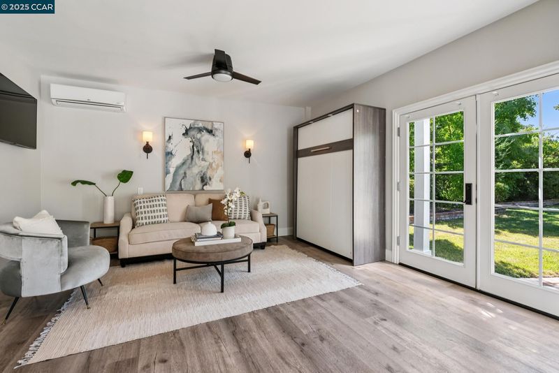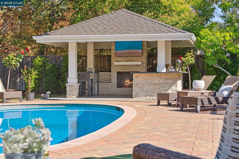 California Living at Its Finest – Indoor/Outdoor Oasis with guest house Welcome to this beautifully updated single-level home, offering the ultimate in California indoor-outdoor living. Situated on a generous 12,320 SqFt flat lot, this 1,636 SqFt residence (public record) and detached 500 SqFt (buyer to verify) guest house with a full kitchen, bathroom, and private entrance—ideal for guests, extended family, art studio and/or work. Blends style, space, and functionality—perfect for entertaining or relaxing in your private retreat. Step outside into your own backyard oasis, featuring a sparkling pool, hot tub, three lush grass play areas, and a stunning covered cabana outfitted with a built-in electric-start gas fireplace, gas BBQ, sink, and refrigerator. Enjoy refreshments and your favorite shows on the large screen TV with Sonos speakers while gathering with friends and family in this resort-style setting. Inside, the home boasts 3 spacious bedrooms and 2 fully updated bathrooms. The modern kitchen features a large island and opens to an expansive family room, where sliding glass doors frame an unobstructed view of the incredible backyard, bringing the outdoors in. Whether you're hosting a party or enjoying a quiet evening by the pool, this home has it all.