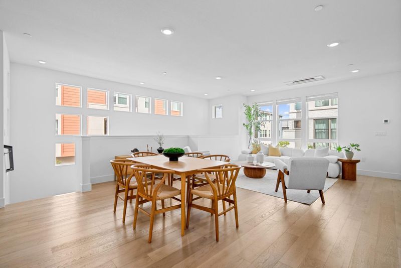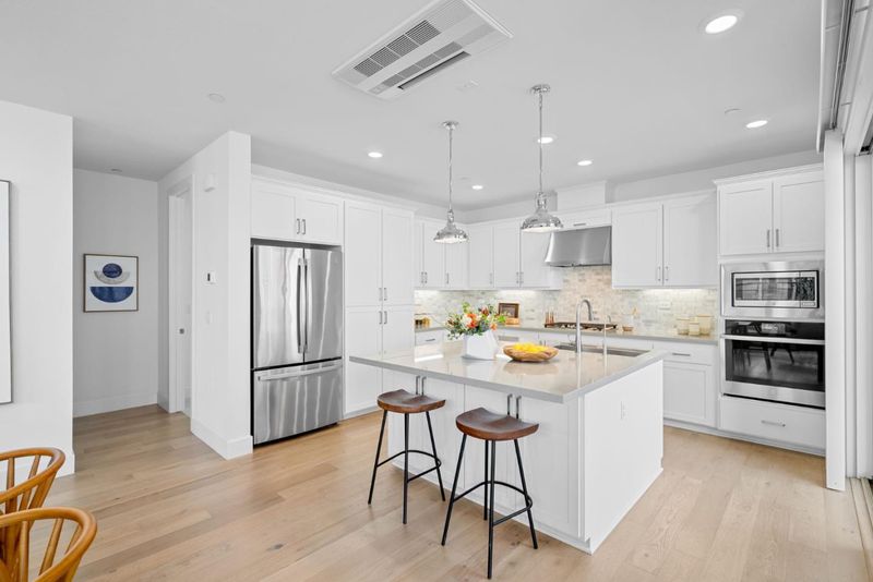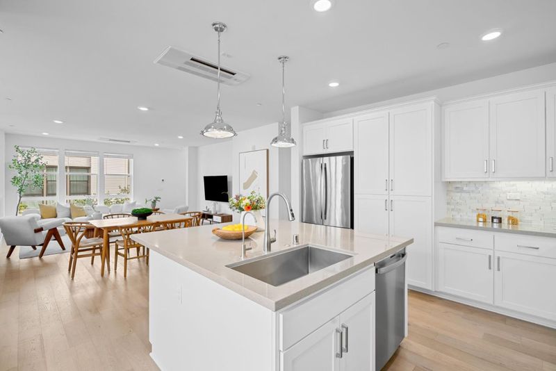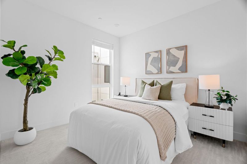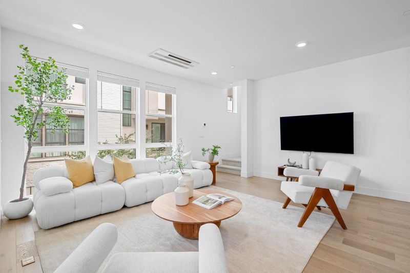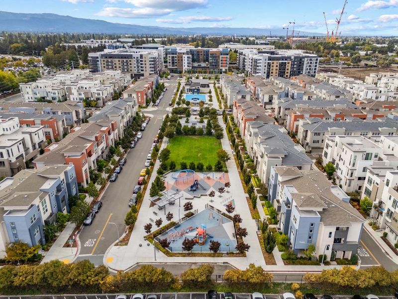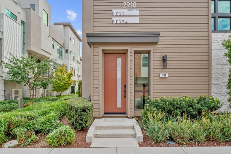 RARELY AVAILABLE FLOOR PLAN - BEST LOCATION IN NUEVO! Built in 2020, this modern townhome offers 1,924 sqft of beautifully finished living space with 3 bedrooms, a private office/den, and 2.5 bathrooms - a flexible layout designed for work-from-home professionals and growing families. Step into bright, sun-filled interiors with soaring 11-foot ceilings and expansive windows. The chefs kitchen features stainless steel appliances, quartz countertops, shaker soft-close cabinetry, and statement pendant lighting over a large island - ideal for everyday living and entertaining. Upgrades include VENETA cordless blinds, wide-plank hardwood floors, a whole-home water softener, and a sleek half-wall stair design that adds safety and a clean, modern look. The attached EV-ready 2-car garage also features a separate storage room, perfect for bikes, seasonal gear, or hobby space. Enjoy the Nuevo lifestyle with a clubhouse, dog park, playgrounds, basketball court, and outdoor gathering spaces. Bike to NVIDIA or Qualcomm, pick up groceries at Costco and Whole Foods, or hop on Lawrence Caltrain for a smooth Silicon Valley commute. This home is move-in ready, low-maintenance, and a smart long-term investment in one of Santa Claras most desirable communities.