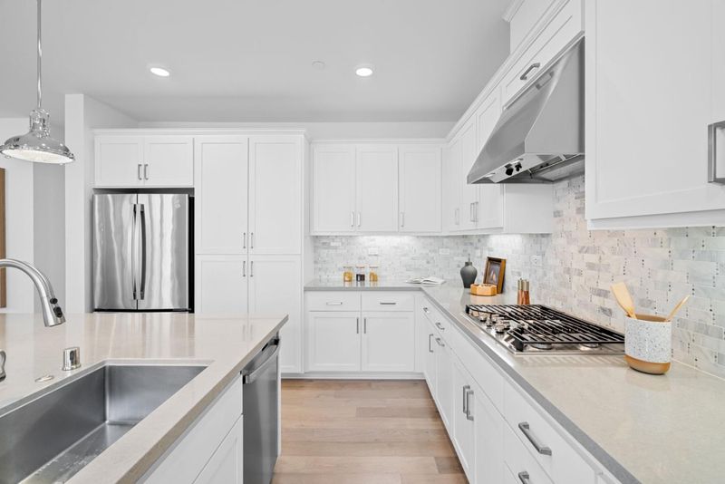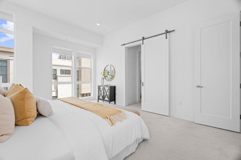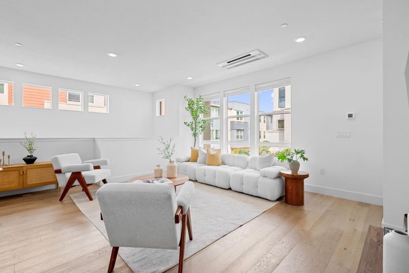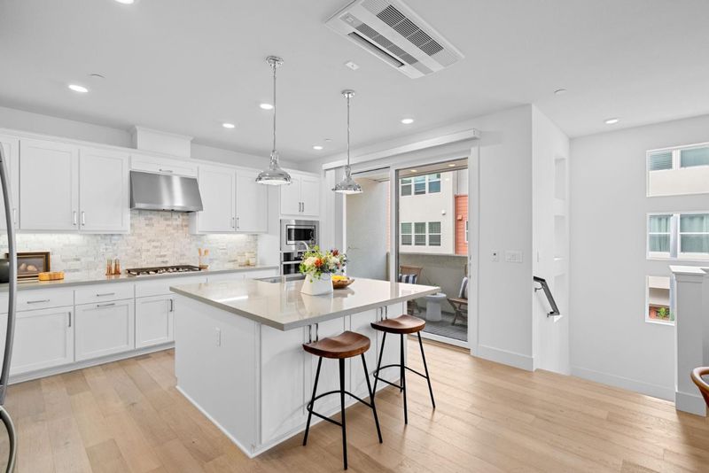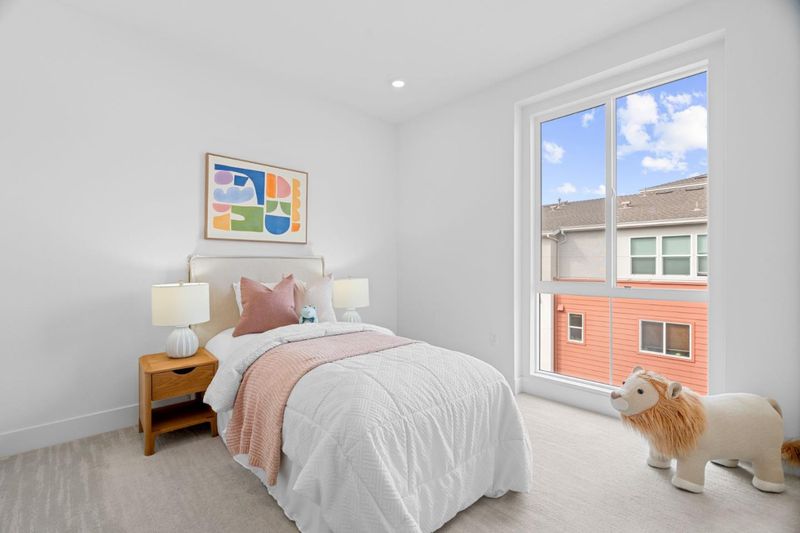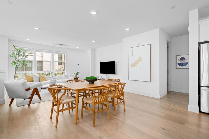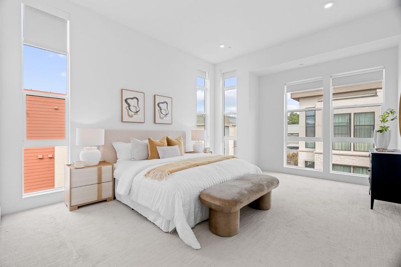 RARELY AVAILABLE FLOOR PLAN - BEST LOCATION IN NUEVO! Built in 2020, this modern townhome offers 1,924 sqft of beautifully finished living space with 3 bedrooms, a private office/den, and 2.5 bathrooms - a flexible layout designed for work-from-home professionals and growing families. Step into bright, sun-filled interiors with soaring 11-foot ceilings and expansive windows. The chefs kitchen features stainless steel appliances, quartz countertops, shaker soft-close cabinetry, and statement pendant lighting over a large island - ideal for everyday living and entertaining. Upgrades include VENETA cordless blinds, wide-plank hardwood floors, a whole-home water softener, and a sleek half-wall stair design that adds safety and a clean, modern look. The attached EV-ready 2-car garage also features a separate storage room, perfect for bikes, seasonal gear, or hobby space. Enjoy the Nuevo lifestyle with a clubhouse, dog park, playgrounds, basketball court, and outdoor gathering spaces. Bike to NVIDIA or Qualcomm, pick up groceries at Costco and Whole Foods, or hop on Lawrence Caltrain for a smooth Silicon Valley commute. This home is move-in ready, low-maintenance, and a smart long-term investment in one of Santa Claras most desirable communities.
