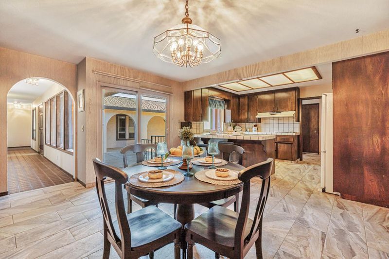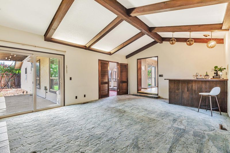 A unique custom-built home thoughtfully designed when craftsmanship and pride in homeownership mattered. Nestled in an established neighborhood, this property offers timeless charm, unique features, and a strong foundation both structurally and in character. Step into the private front courtyard, once a lush garden oasis, now a blank canvas ready for you to bring your vision. Inside, you'll find details that reflect the artistry of the era, an ornate custom front door, a tiled entryway with Spanish influences, retro light fixtures, vintage doorknobs, and nostalgic step-down living areas. Picture the joy shared around the wet bar in the living room with open-beamed, vaulted ceilings. The living and family rooms are divided by double doors that can be opened for entertainment or closed for cozy, quiet evenings. Generously sized bedrooms provide plenty of room to grow, and the expansive primary suite includes open-beam ceilings, two large closets, and a private bath. Interior updates may be desired but this home offers peace of mind with major improvements already completed: updated roof, dual-pane windows, updated water heaters, and termite clearance. This is your opportunity to own a truly one-of-a-kind home rich in character, full of potential, and ready for its next chapter.