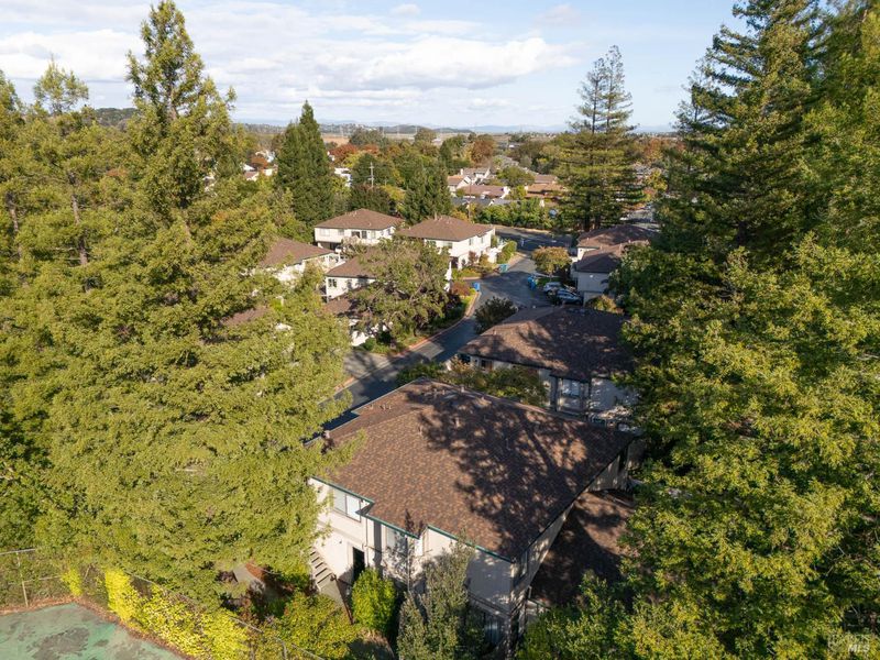 Welcome to 121 Cheda Lane. This 2 bed | 1 bath end-unit condo lives like a townhome, tucked peacefully at the back of the complex for added privacy. Upstairs you'll find both bedrooms and full bath, while the main level features an updated kitchen, dining and living areas. Step outside to your own spacious patio, shaded by trees and ideal for outdoor-dining, entertaining, or relaxing! Additional highlights include central AC and heat, in-unit laundry, 2-car tandem carport parking, and extra storage. The community offers beautifully landscaped grounds with soaring redwoods, plus a pool and spa to enjoy. All this makes 121 Cheda Lane a wonderful Marin retreat at an exceptional value!