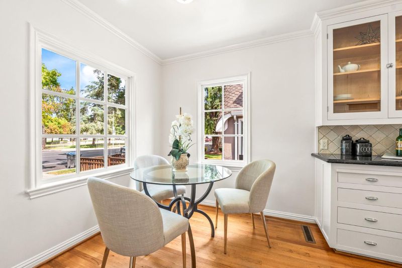 Welcome home to 910 Pine Avenue in Willow Glen! This adorably charming bungalow sits park-side, on a shady tree-lined street. Your new home has been tastefully updated and well-maintained. The Chef's Kitchen features beautiful glass-door cabinetry, stone backsplash, and a cozy breakfast nook. Entertain guests in your formal dining room, or relax by the fireplace in your spacious living room, that showcases a stunning feature window. Enter your lush backyard through the lovely French doors, onto your spacious wooden deck. The backyard is home to abundant planter boxes, citrus trees, and floral varieties. Your new home also features a Laundry and/or Mud Room adjacent to the kitchen, a partial basement with storage space or wine cellar possibilities and a detached garage. Located minutes to Downtown Willow Glen, Lincoln Ave, Top Rated Schools, and more!