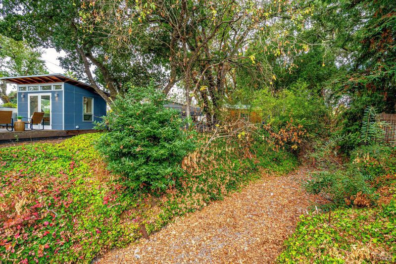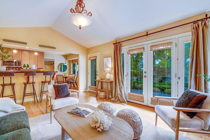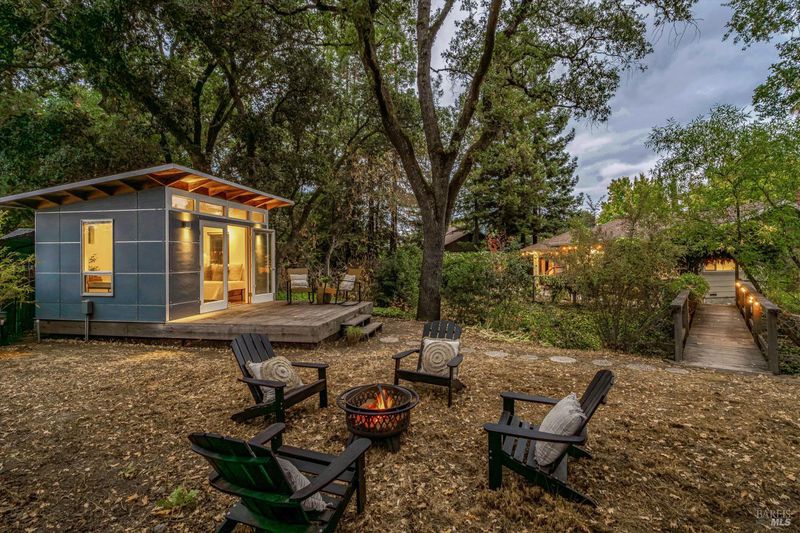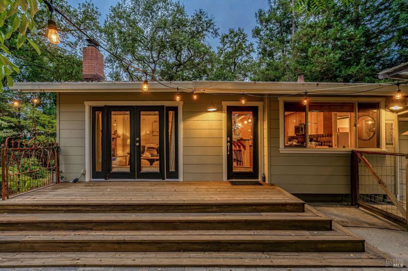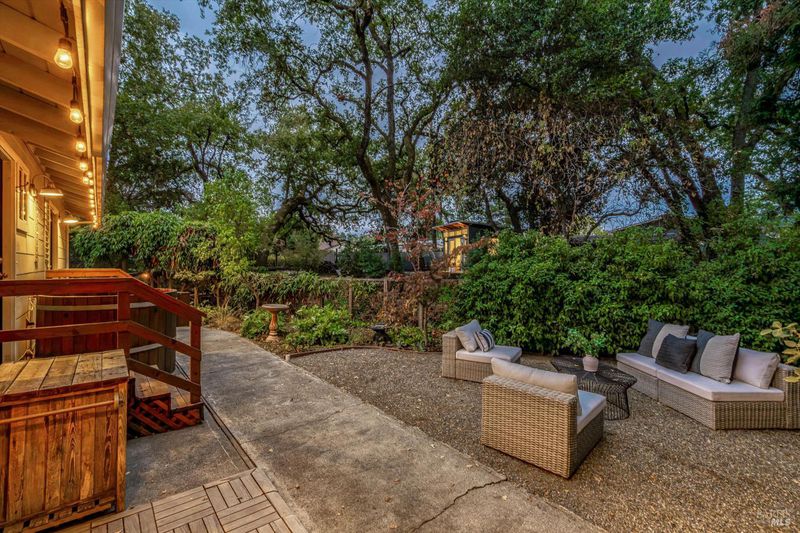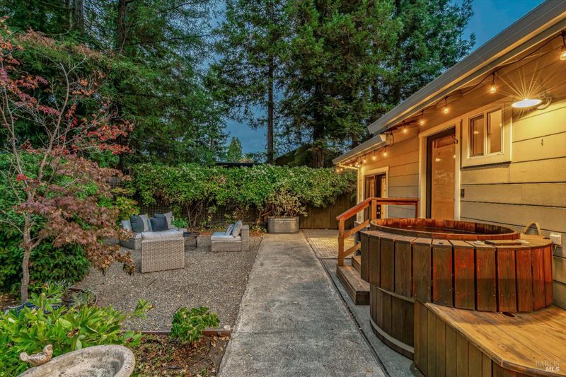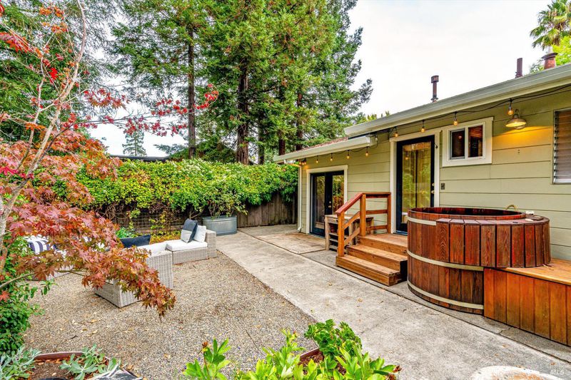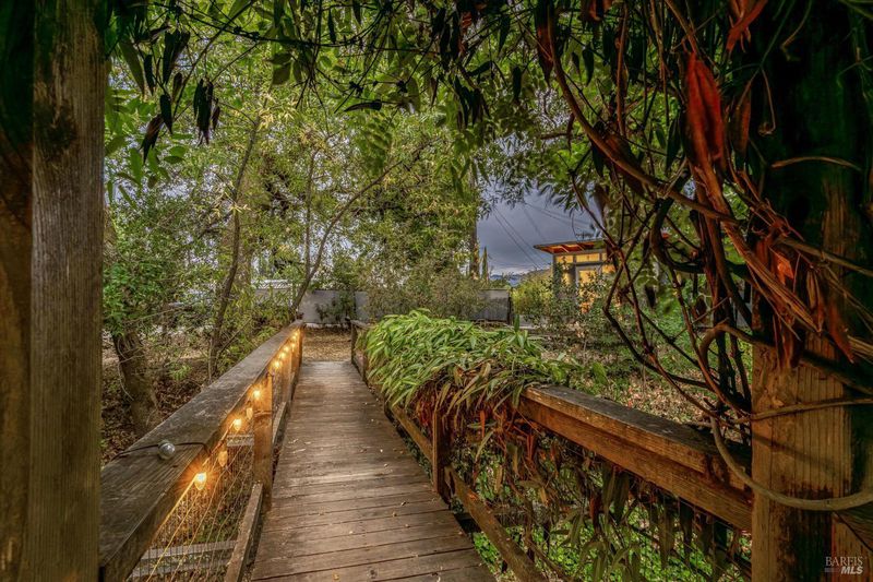 Don't miss this romantic Wine Country retreat in the heart of Sonoma! Set on a generous lot with enchanting views from every window, this private home blends rustic charm with modern comfort. Vaulted ceilings, French doors, and rich wood and tile floors fill the interiors with warmth and natural light. A spacious living area with fireplace creates an inviting setting for everyday living or entertaining. The kitchen offers excellent scale for cooking and gathering, with seamless indoor/outdoor flow. Retreat to the generous primary suite or welcoming guest bedroom, each with private yard access and a soothing hot tub just steps away. When evening falls, the landscaped grounds transform into your own private wonderland with ambient lighting, a darling footbridge over the seasonal creek, and an additional entertaining space with artist studio or office. Low-maintenance, lush landscaping maximizes privacy while keeping upkeep simple. Ideally located near shopping, dining, and Sonoma's historic Plaza, yet offering the peace and tranquility of country living, this home is truly a special place to call your own.