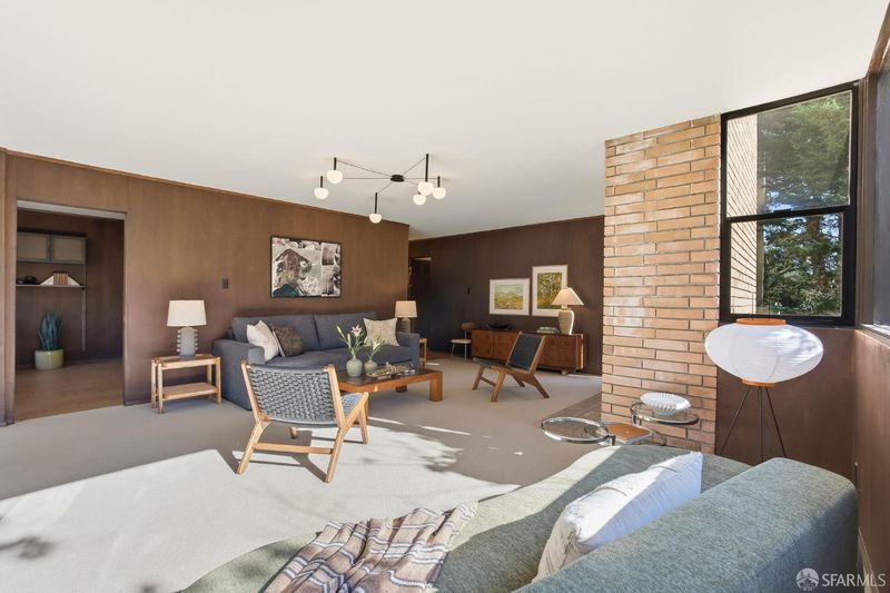 Timeless mid-century style defines this spacious Iconic Eichler residence located in the heart of Cathedral Hill. This 3bd/2ba offers a generous scale, classic architectural details, and an inviting layout in one of San Francisco's most central neighborhoods. The expansive living and dining area is filled with natural light from a wall of windows and anchored by a classic brick fireplace, creating a warm focal point and an inviting space for family and friends to gather. Rich wood paneling, built-ins, and original design elements highlight the iconic mid-century aesthetic that makes Eichler homes so beloved. Just beyond the living area, an enclosed porch provides additional flexibilityperfect as a cozy sitting area, reading retreat, or home office overlooking the building's peaceful courtyard. Down the hall are two well-proportioned bedrooms and a spacious primary suite with an en-suite bath. The floor plan provides comfortable separation between living and sleeping areas while maintaining an easy flow w/ new flooring throughout the home. The kitchen offers ample cabinetry, new counter tops and workspace that retain classic details that complement the home's mid-century character. This well-maintained cooperative building offers elevator access, shared courtyard spaces, in-unit laundry, and secure one-car garage parking. Ideally located in vibrant Cathedral Hill, the home is just moments from the shops and restaurants of Fillmore Street, the cultural attractions of Japantown, and the energy of Hayes Valley. Public transportation, neighborhood parks, and major commute routes are all easily accessible, making everyday city living both convenient and connected!