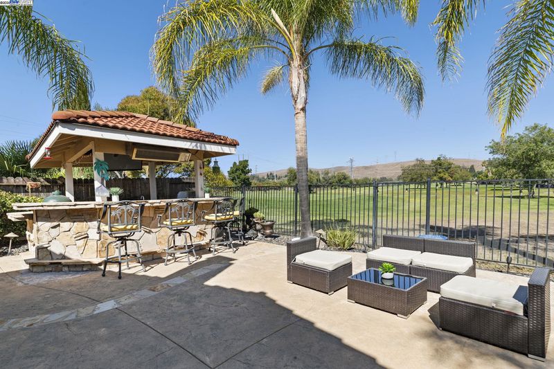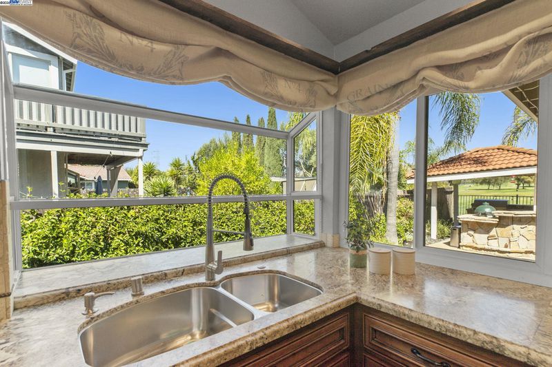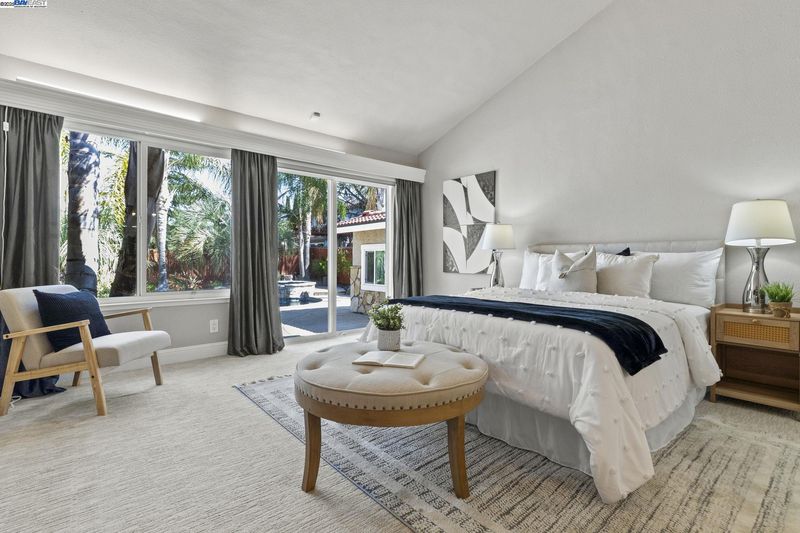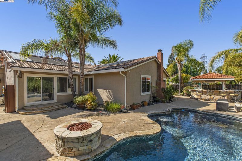 Stunning single-story 4-bedroom, 2-bathroom home offering luxury, comfort, and resort-style living in a peaceful cul-de-sac within a sought-after golf course community. Soaring vaulted ceilings, expansive windows, and abundant natural light create an open, airy atmosphere. The chef’s kitchen impresses with a Sub-Zero fridge, 48” 6-burner Viking range with double oven and griller, pot filler, commercial vent hood, quartz counters, breakfast bar, Miele espresso machine, microwave, and premium appliances. An adjacent family room boasts a cozy gas fireplace and sliding doors for seamless indoor-outdoor living. The primary suite features vaulted ceilings, backyard access, dual closets, and a spa-inspired ensuite with dual vanities and a lavish shower. Secondary bedrooms share a full bath with tub/shower combo. The backyard oasis includes a sparkling pool, spa, firepit, and outdoor kitchen with grill, fridge, sink, and bar seating. A custom pool house offers flexible use as an office, gym, or guest retreat. Additional features include laundry room, central A/C, 3-car garage, surround sound, closet systems, and hand-scraped hardwood or plush carpet. Prime location!