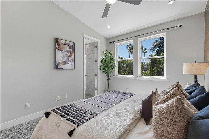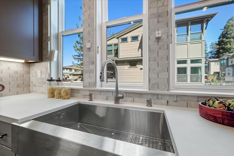 MODEL HOME in GREAT LOCATION!!! This Model Home showcases more than 100k dollars in designer selected finishes plus owner upgrades. The kitchen is an efficient U shaped layout with a gas stove and a smart range hood that makes everyday cooking easy. A built-in desk near the laundry area helps you handle work and home tasks in one place, and the dining peninsula functions for casual meals or study time. A first floor den offers a quiet space for working from home. Owned solar panels deliver long term energy efficiency. Great Location in Mountain View with quick access to major employers including Google, LinkedIn, Microsoft, NVIDIA and NASA Ames, along with nearby shopping, dining, and everyday conveniences.