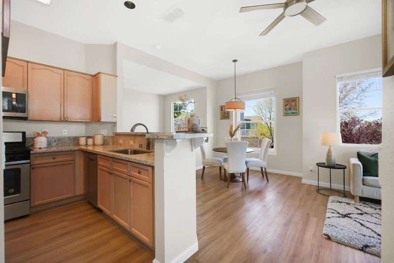 Welcome to this beautifully updated 2-bedroom, 2-bath condo in the highly desirable Oakhurst Country Club North Valley area of Clayton. This light-filled end unit boasts an open floor plan with soaring ceilings, a cozy gas fireplace, and breathtaking hillside views. Recent upgrades include a new water heater (2018), new AC and furnace (2023), new balcony and roof (2024), and fresh exterior paint with a garage door repair (2025). The sale includes a refrigerator, washer, and dryer for added convenience. Enjoy the luxury of two garages. An attached single-car garage plus a separate single-car garage. The HOA offers fantastic amenities, including a community pool, recreation center, basketball, and volleyball courts, as well as exterior maintenance covering landscaping, balconies, and roofs. Located near Mt. Diablo State Park, you will have easy access to hiking, walking, and running trails. Don't miss this incredible opportunity. See you at the Open House!