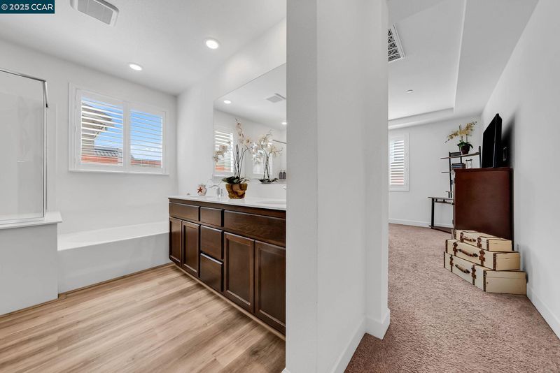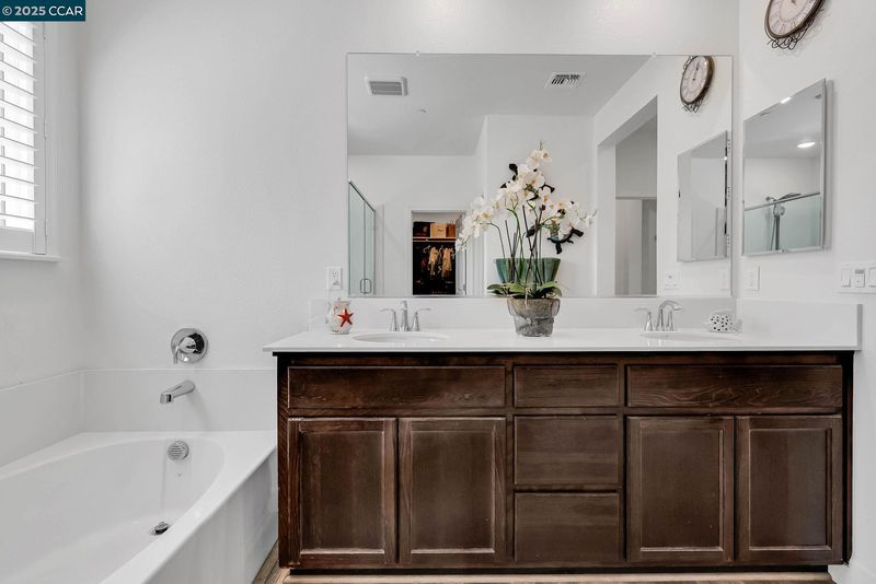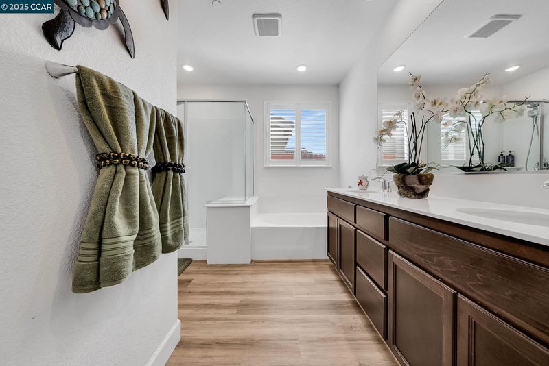 Beautiful Single-Story Home. Built in 2021. This immaculate 2435 sq ft, 4-bedroom, 3.5-bath home features a spacious master suite with a walk-in closet, soaking tub, and separate shower, plus a junior suite and two additional bedrooms. Highlights include: Modern kitchen with pull-out drawers, dual stainless sinks, and premium Samsung appliances, Wet bar with overhead cabinets and laundry room with extra storage, Plantation shutters, upgraded waterproof flooring, and pre-wiring for surround sound & security, Energy-efficient solar power and two-car garage, Built in backyard porch. Exterior features: Freshly painted waterproof fencing, Professionally landscaped front yard with river rock creek bed & Hawaiian ti-leaf plants, Low-maintenance paved backyard & side yard with brick borders. Conveniently located near shopping, dining, schools, and parks, with easy access to downtown Sacramento.