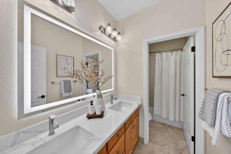 - Double Sinks, Marble, Shower and Tub, Tub in Primary Bedroom, Updated Bath, Full on Ground Floor, Primary - Oversized Tub, Primary - Stall Shower(s), Stall Shower - 2+