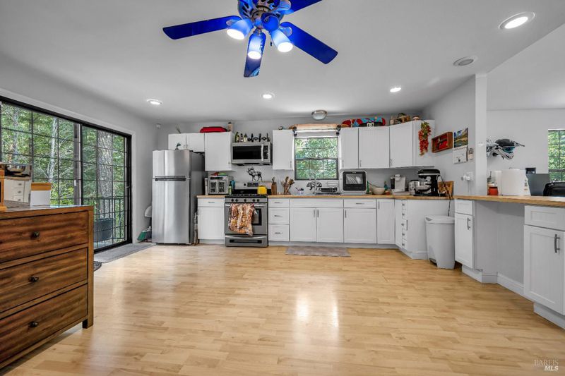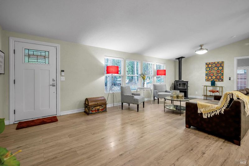 This beautifully remodeled home shows true pride of ownership with modern upgrades throughout. It features owned solar, a new roof, fresh paint, and durable luxury vinyl flooring. Both the main home and the studio apartment are equipped with tankless water heaters for efficiency and comfort. The kitchen includes quartz counters and a double oven, while a wood stove creates a warm and cozy atmosphere on cold winter nights. New French doors open to a deck designed for entertaining and enjoying the outdoors. The studio apartment is complete with mini-split heating and cooling, making it perfect for guests, rental income, or a private home office. An additional parcel is also included, offering extra space and future potential. This move-in ready property blends energy efficiency, comfort, and versatility, making it a wonderful place to call home.
