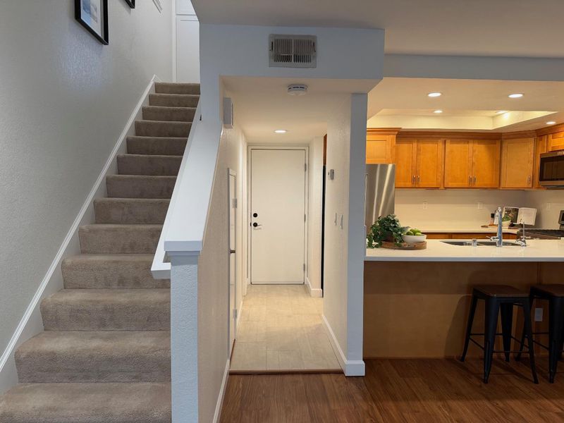 Welcome to Hamilton Place Cottages! This beautiful home is located near the end of a cul-de-sac which backs up to the Los Gatos Creek Trail. The home offers a quiet spot away from the busy traffic on Hamilton and Leigh Avenues, yet it's close to everything The Pruneyard, Downtown Campbell and Willow Glen have to offer. Come tour this bright, airy 2-bedroom, 2.5-bath townhouse with vaulted bedroom ceilings, an updated interior, fireplace and private cozy back-yard with enchanting private patio. The home includes a full KitchenAid appliance suite and an attached 2-car garage with additional included storage and full-size washer and dryer plus folding counter with storage.