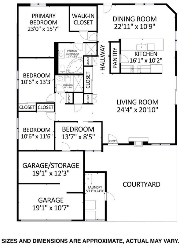 Now Offered at $200K Less! Extensive, tasteful updates on large corner lot less than 2 miles to Apple Spaceship Campus! Open-concept kitchen boasts newly-redone pantry, stainless steel appliances with five-burner gas stove, & long peninsula with seating. Soaring vaulted ceilings & exposed beams create airy living room & continue into the bedrooms. Spacious primary suite includes walk-in-closet & generous en-suite bathroom with wraparound vanity counter & large soaking tub. Plus, sleek engineered flooring, updated bathrooms with bidets, & stylish kitchen shutters! Every detail considered such as new electrical panel, rewired bedrooms, extra grounded outlets, fresh interior & exterior paint, & large closets! Additional updates include interior doors; recent roof work; track lighting in living room; water heater; faucets & plumbing; garage door; & central AC, double pane windows, furnace, & insulation for climate comfort! Outside, enjoy serene private front courtyard & expansive backyard shaded by mature trees! Plus, three sheds provide added utility & storage. Prime central location near major thoroughfares, public parks like the 52-acre Central Park, large tech employers, & more! Students have access to top schools including Pomeroy Elementary, Cabrillo Middle, & Santa Clara High!