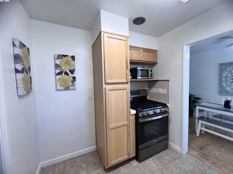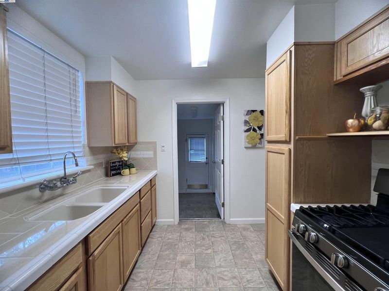 - Gas Range, Tile Counters, Gas Range/Cooktop