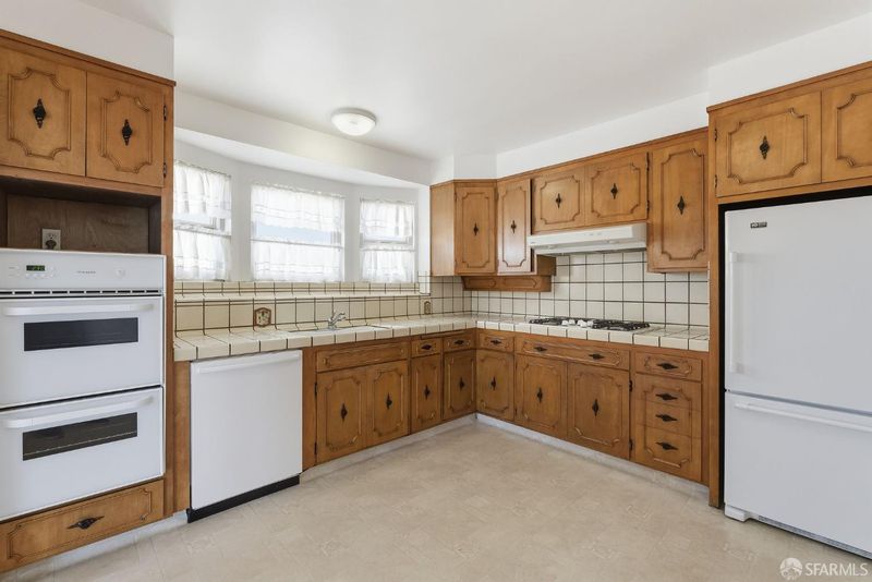 Step into the timeless appeal of 345 Felton Street, circa 1941, nestled in the heart of San Francisco's vibrant Portola District on the city's sunny south side. This bright corner home, detached on three sides, is filled with character and brimming with potential, an ideal opportunity for first-time homeowners or those looking to personalize a classic property. Beyond a secure gate, a classic tunnel-entry staircase leads to a welcoming wood front door. Spanning approximately 1,225 sq. ft., the home masterfully balances vintage charm with modern functionality. Upstairs, period details shine throughout, including intricate antique light fixtures, elegant wall sconces, graceful archways, and parquet hardwood floors. An ornate fireplace and decorative coffered ceilings anchor the spacious, light-filled living and dining rooms. The eat-in kitchen features a greenhouse window and ample counter space, perfect for daily living and entertaining. Two generously sized bedrooms are situated down the hall, along with a bright and airy full bathroom. Downstairs offers abundant potential, featuring a large bonus room, a knotty pine-paneled room, a cozy bathroom, and a laundry area. This flexible space is ideal for a recreation room, home office, gym, or possible third bedroom with expansion potential. A wall of storage complements the 2-car tandem garage. Legality of the improvements is unknown. The southeast-facing garden provides a peaceful outdoor retreat, complete with fruit trees, seasonal blooms, and mature flowering shrubs. Positioned on a designated slow street, the home enjoys a rare and coveted setting directly across from a city parkoffering open green space, room to play, and a daily connection to the outdoors right outside your front door. 345 Felton Street is also just moments from schools, a community recreation center, and the shops and restaurants along San Bruno Avenue, with convenient access to major freeways