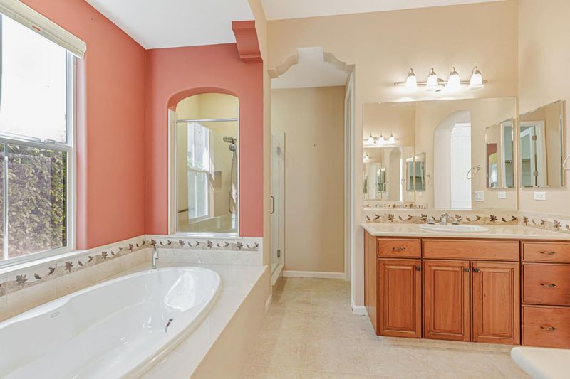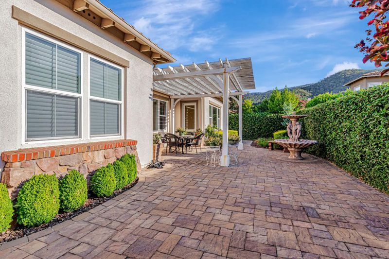 Welcome to this sought-after single-story home offering 2,579 sq. ft. of beautifully designed living space, where elegance meets comfort. Situated on a desirable corner lot revealing picturesque mountainside views, this residence offers exceptional curb appeal and showcases true pride of ownership. Inside, youll find a thoughtfully designed layout featuring 4 bedrooms and 3 full bathrooms, including a convenient Jack and Jill bedroom setup. The kitchen is appointed with granite countertops, stainless steel appliances, and pristine cabinetry that exudes a like-new sophistication. Rich walnut hardwood floors and elegant crown moulding throughout create a timeless sense of luxury. Step outside to your private backyard retreat, complete with pavers and a charming pergola, perfect for entertaining or simply unwinding while taking in the serene views. This home is located within an exclusive gated community that offers an unparalleled lifestyle. Enjoy access to resort-inspired amenities including a private golf course, swimming pool, clubhouse, basketball and tennis courts, bocce ball, and more. Experience the perfect blend of luxury, comfort, and community living!
