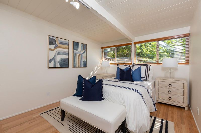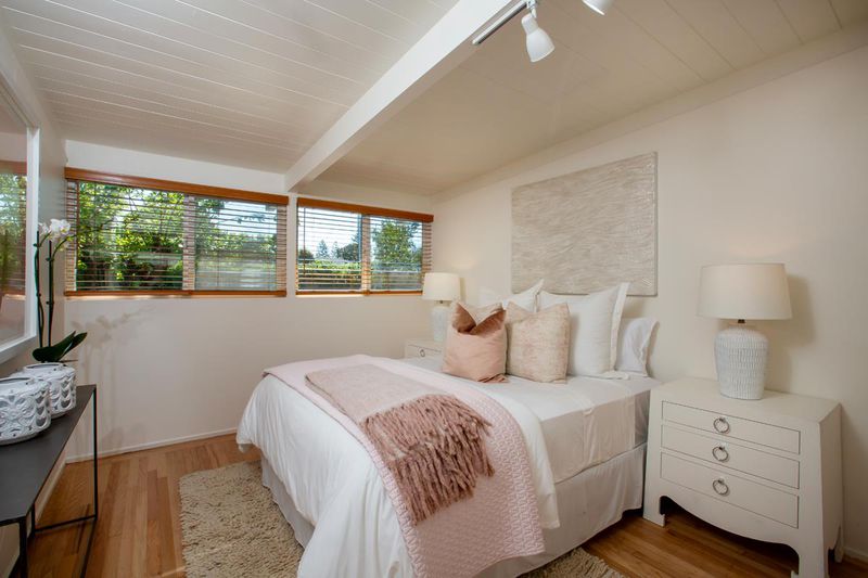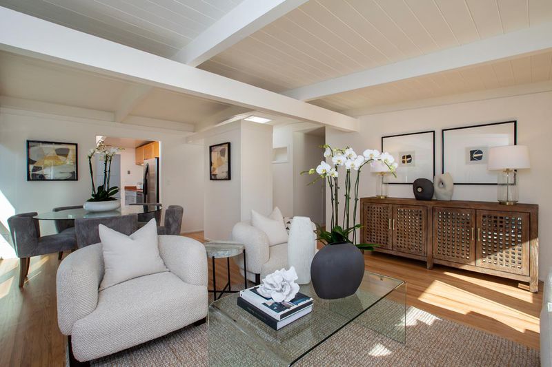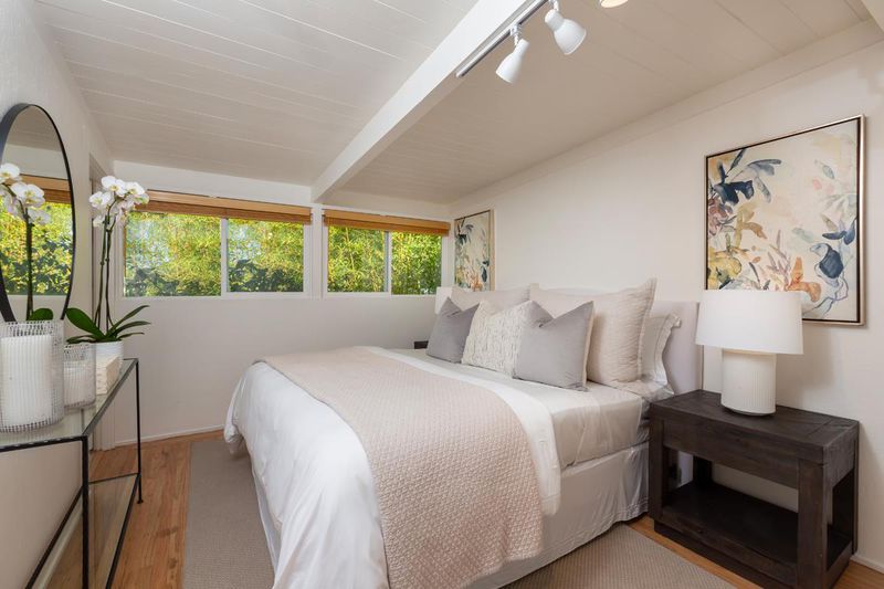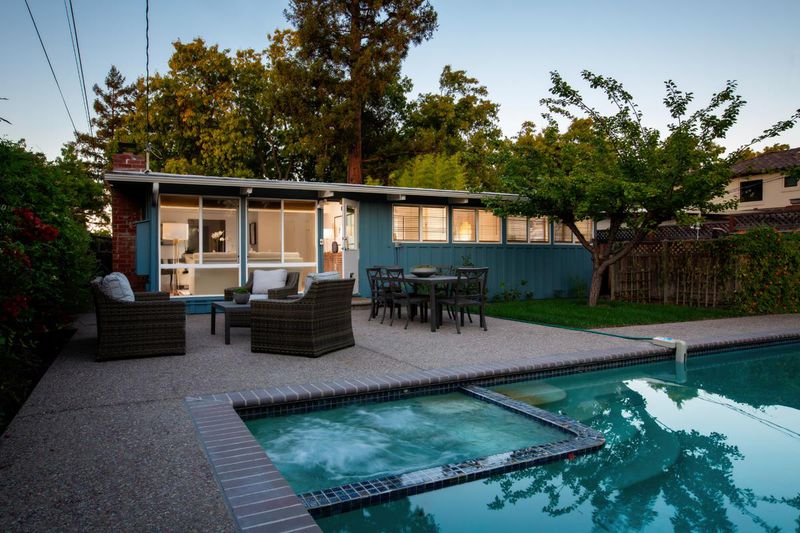 This Eichler-style home combines fresh updates with authentic mid-century character, highlighted by vaulted beamed ceilings and expansive windows framing the pool and lush gardens. Newly painted inside and out and with refinished hardwood floors, the home also features an updated kitchen and baths, operable skylights, and a fireplace in the central living and dining room. Refreshed landscaping surrounds the home where a pool and spa highlight the private rear yard, a lawn area is perfect for play, and hummingbirds enjoy the colorful blooms. Other recent upgrades include a newer roof and dual-pane windows, adding to the ease and comfort of living in this special home. Just one block from Palo Altos Bicycle Boulevard, two blocks from Mitchell Park, and minutes from acclaimed Palo Alto schools, this Midtown area home reflects timeless mid-century design with thoughtful updates for todays lifestyle and the opportunity to further transform into your dream home. El Carmelo Elementary; JLS Middle; Gunn High (buyer to confirm). (Please do not leave children unattended due to pool.)