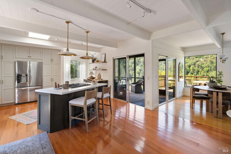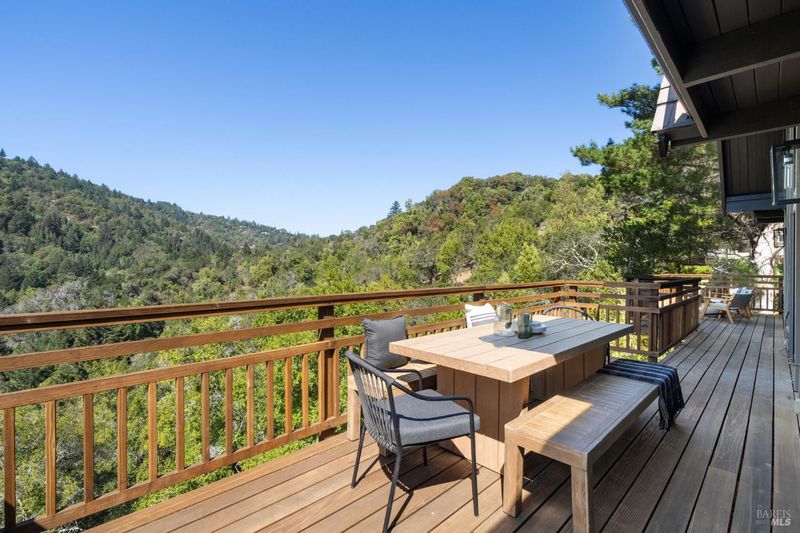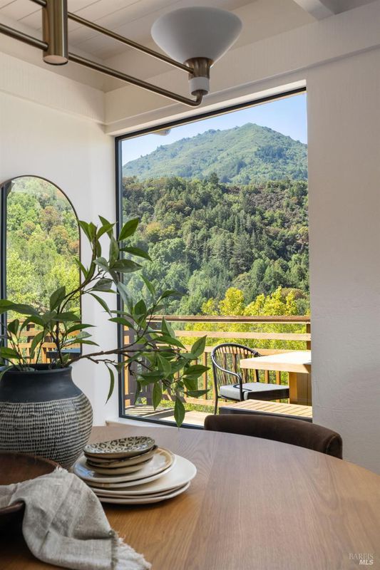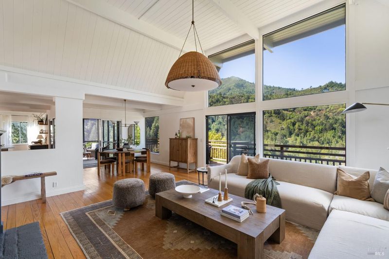 Perched above Larkspur with uninterrupted views of Mount Tamalpais, 271 Wilson Way delivers both serenity and adventure at your doorstep. This 3-bed, 3-bath, 2,581 sqft home has been thoughtfully updated throughout, blending comfort and style with everyday functionality. Soaring ceilings define the great room, where open-concept living and dining flow into a large eat-in kitchen with new quartz countertops, stainless steel appliances, and a sunroom made for lounging while soaking in the panoramic views. Front and back decks provide plenty of outdoor space for morning coffee or al fresco dining against the mountain backdrop. The flexible floor plan includes a main-level bedroom and full bath, ideal for guests or multigenerational living. Downstairs, two additional bedrooms, two full bathrooms, and a second living room open onto another deck spanning the house - perfect for quiet mornings, book in hand, or evenings under the stars. A detached two-car garage, ample storage, laundry room, central heat/AC and abundant natural light are among the home's thoughtful amenities. Steps to King Mountain's trailhead and minutes to Dolliver Park and downtown Larkspur's best spots-Equator Coffee, Boichik Bagels, Cafe Rulli, Picco, Perry's, Left Bank and more!