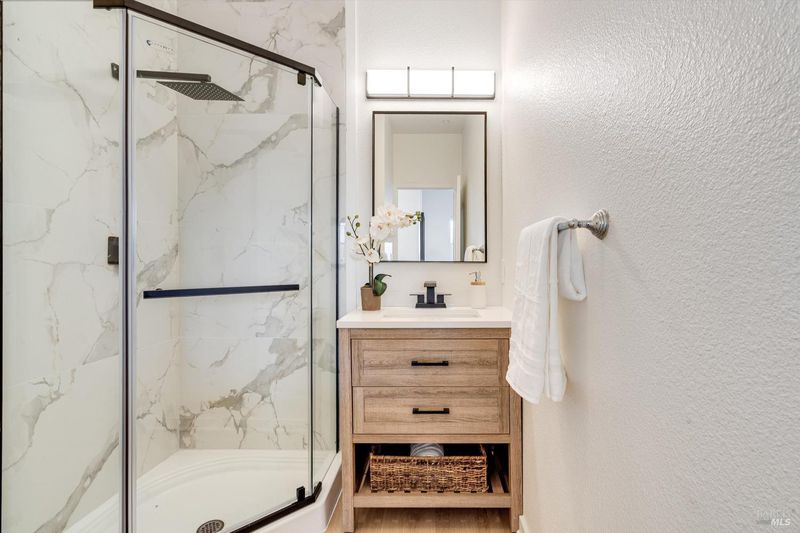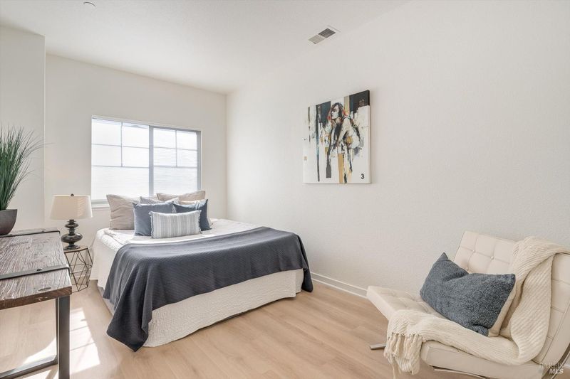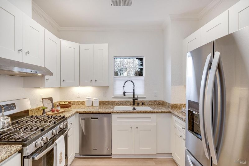 Outstanding value for duplex close to outlets and minutes to Downtown Napa. Perfect for investor looking for 1031 exchange or owner/user who can rent one unit and live in the other. Duplex includes a nicely remodeled 2/2 upper unit and studio apartment below. Both units feature luxury vinyl flooring, washers and dryers and separate electrical meters. The upstairs unit has been refreshed with all new paint, bathrooms, flooring, lighting and new fridge. 2 car garage for upstairs unit and additional uncovered parking space for studio. Rarely available end unit has large fenced yard perfect for BBQ or enjoying your favorite beverage. Upstairs unit is ready to move in and studio has tenant until May 16. Great income potential or buyer looking for second unit for family member. Duplicate listing as residential income.