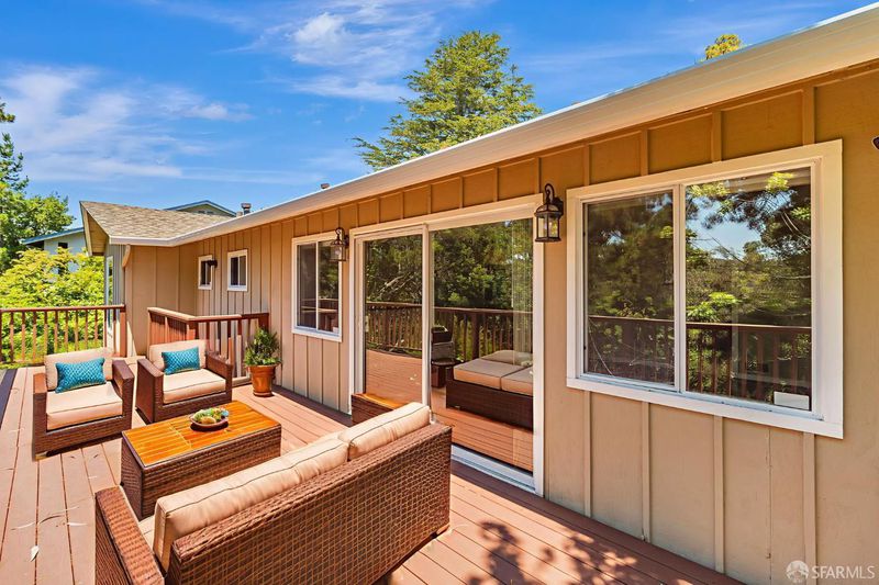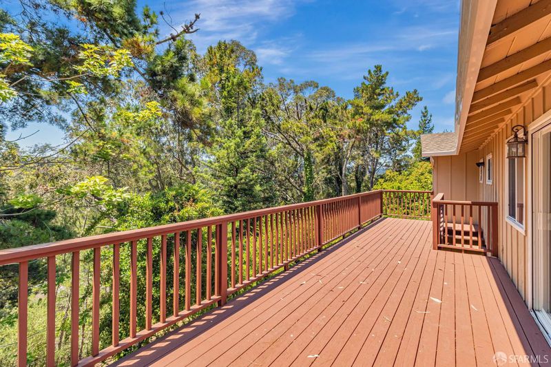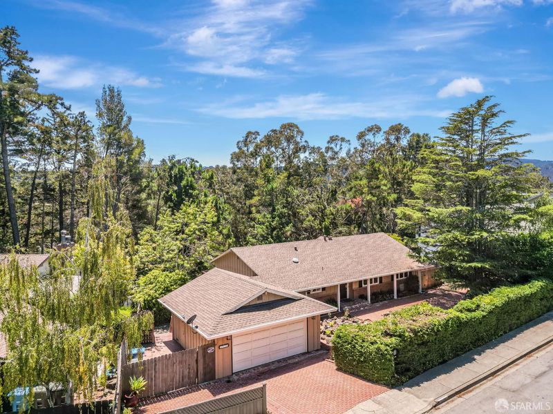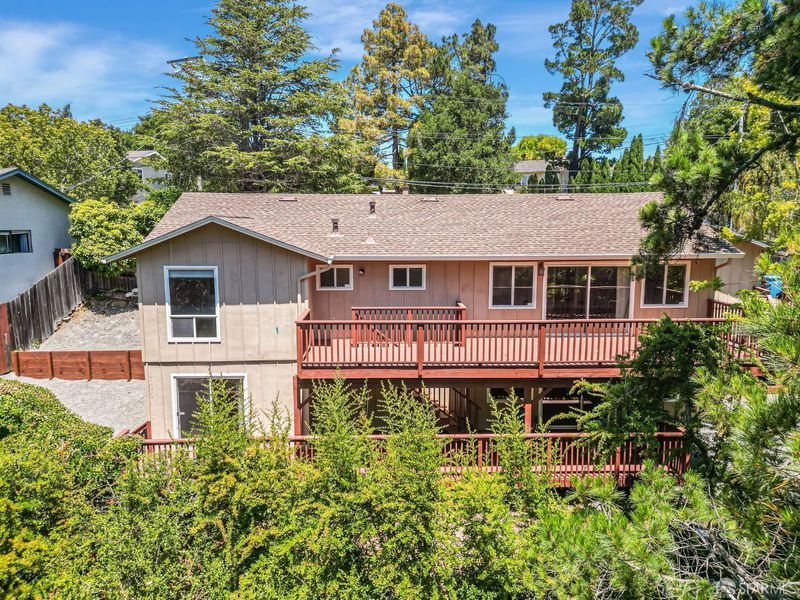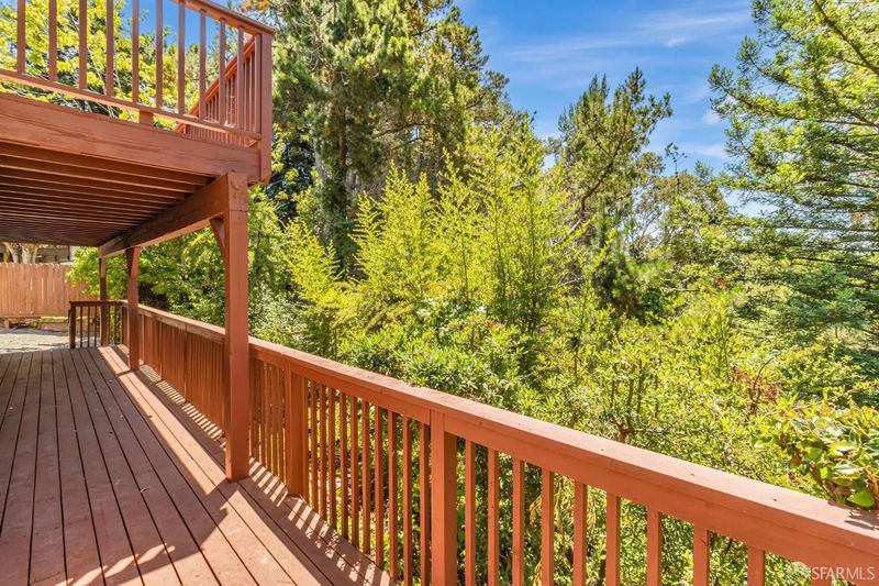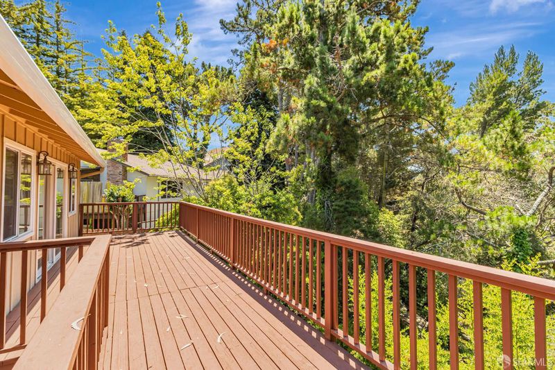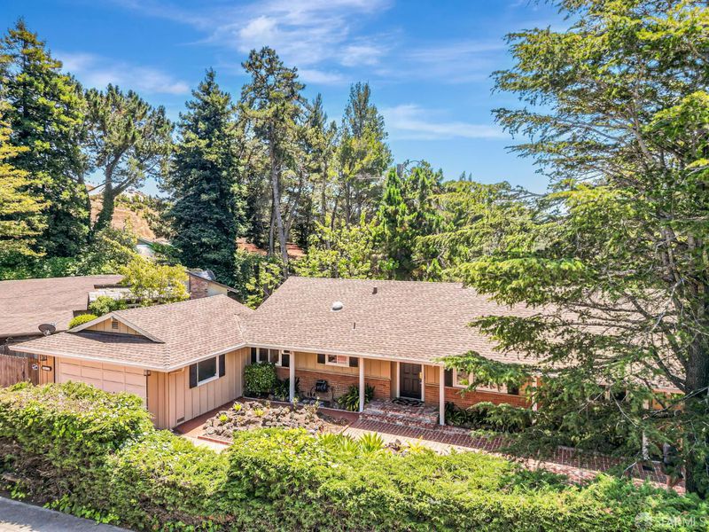 Welcome to the peaceful charm of Baywood Park, a hidden gem nestled in the scenic San Mateo Hills. This inviting home offers wonderful outdoor spaces, starting with a welcoming brick courtyard and privacy hedge in the front yard, perfect for relaxing or gathering with friends. The backyard features two spacious decks with sweeping views of the lush, tree-lined valley looking west toward Crystal Springs. Inside, the main level boasts a bright, open living room with a large walk-out deck ideal for unwinding or entertaining. The kitchen includes a cozy breakfast area and recent updates like granite countertops and sleek stainless-steel appliances. You'll find the primary bedroom on the main floor, along with a dining room featuring a built-in hutch and beautiful hardwood floors throughout. Downstairs offers a generous bonus room, a private bedroom with direct deck access, a full bath, new luxury vinyl floors, a laundry room, and a temperature-controlled wine room. With its unique layout, this home is perfect for those seeking two separate living areas. Attached 2-car garage with workshop space, plus under-house storage area with shelving and lighting. Don't miss this serene mid-century retreat just minutes from top-rated schools, Crystal Springs Village, CSM and easy freeway access.