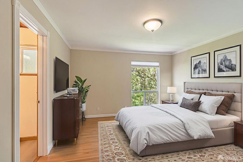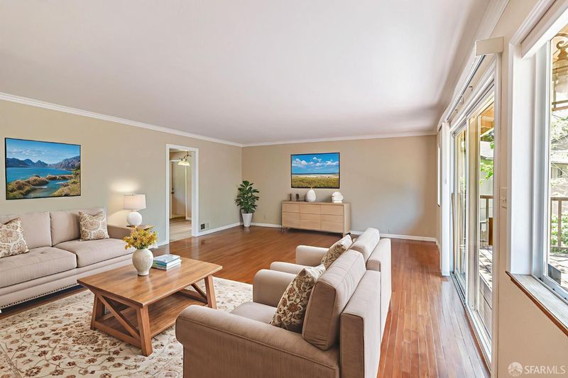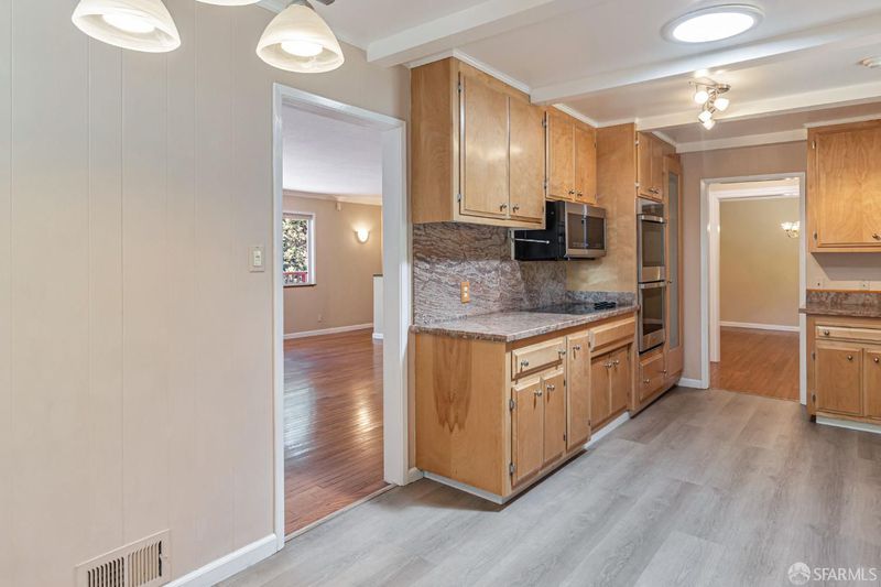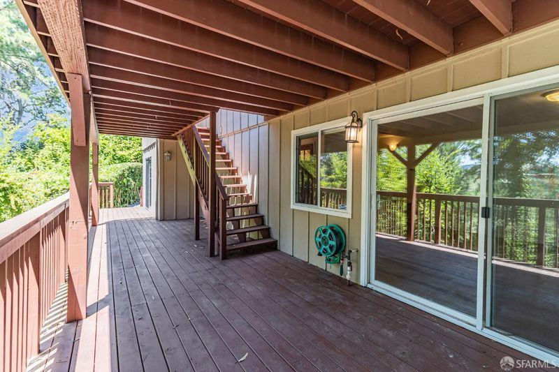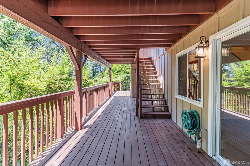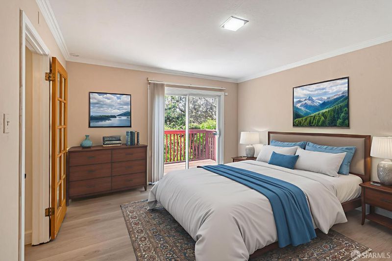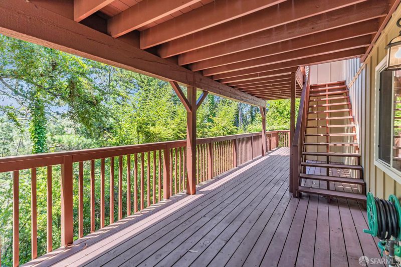 Welcome to the peaceful charm of Baywood Park, a hidden gem nestled in the scenic San Mateo Hills. This inviting home offers wonderful outdoor spaces, starting with a welcoming brick courtyard and privacy hedge in the front yard, perfect for relaxing or gathering with friends. The backyard features two spacious decks with sweeping views of the lush, tree-lined valley looking west toward Crystal Springs. Inside, the main level boasts a bright, open living room with a large walk-out deck ideal for unwinding or entertaining. The kitchen includes a cozy breakfast area and recent updates like granite countertops and sleek stainless-steel appliances. You'll find the primary bedroom on the main floor, along with a dining room featuring a built-in hutch and beautiful hardwood floors throughout. Downstairs offers a generous bonus room, a private bedroom with direct deck access, a full bath, new luxury vinyl floors, a laundry room, and a temperature-controlled wine room. With its unique layout, this home is perfect for those seeking two separate living areas. Attached 2-car garage with workshop space, plus under-house storage area with shelving and lighting. Don't miss this serene mid-century retreat just minutes from top-rated schools, Crystal Springs Village, CSM and easy freeway access.
