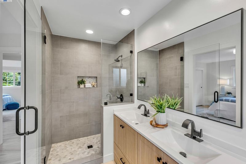 - Shower Over Tub, Solid Surface, Tile, Updated Baths, Closet, Double Vanity, Dual Flush Toilet, Stone, Window
