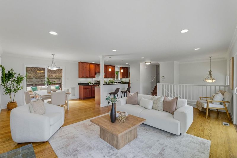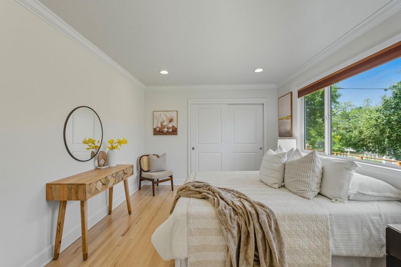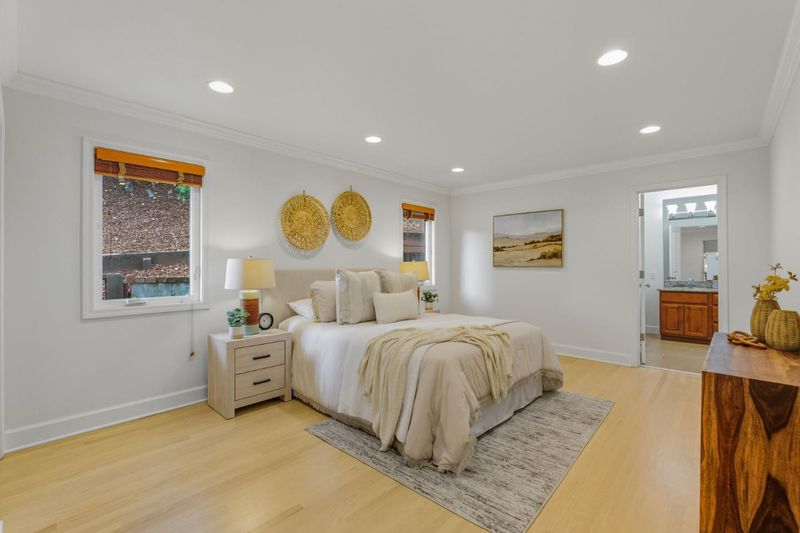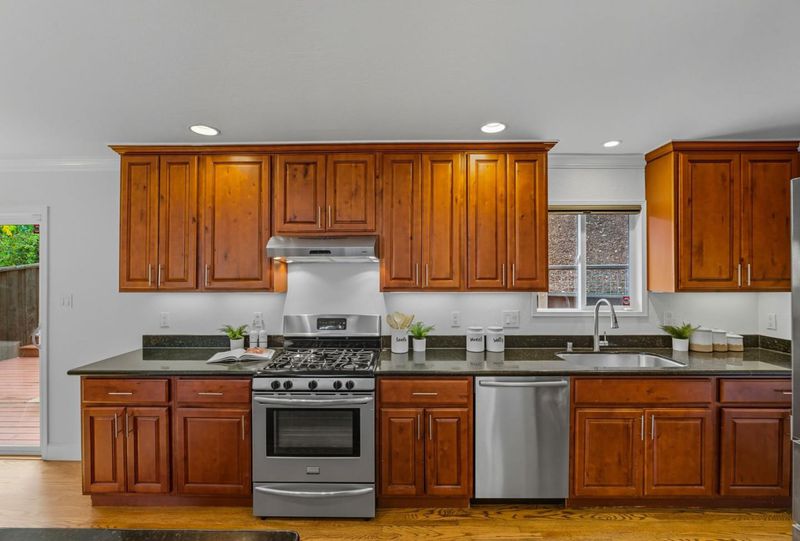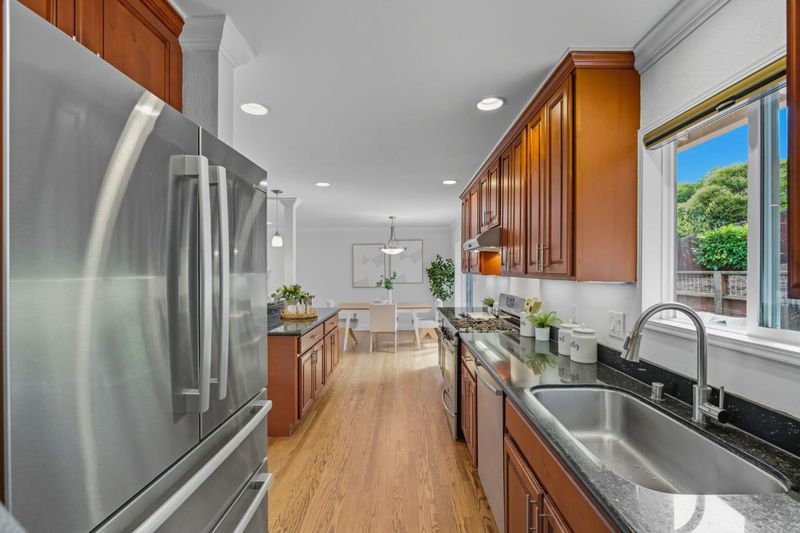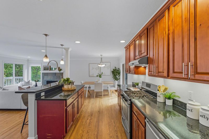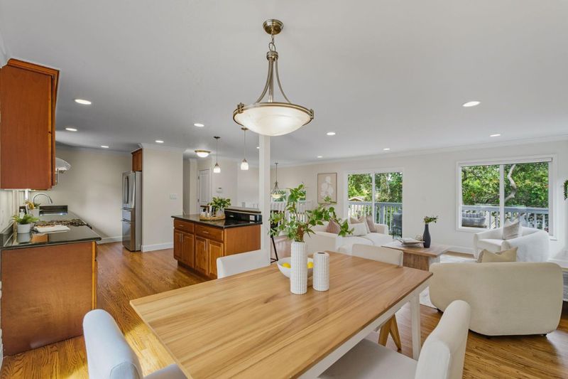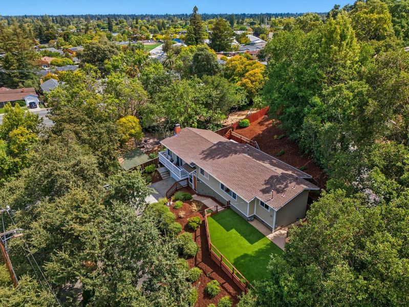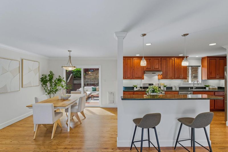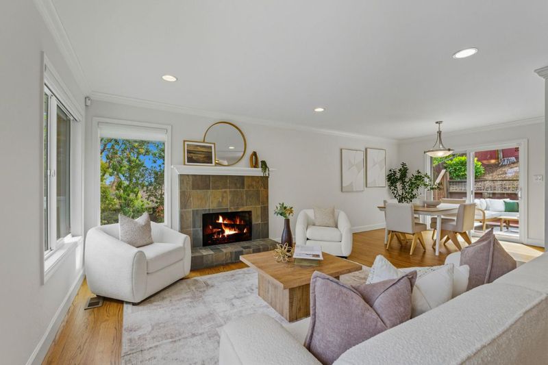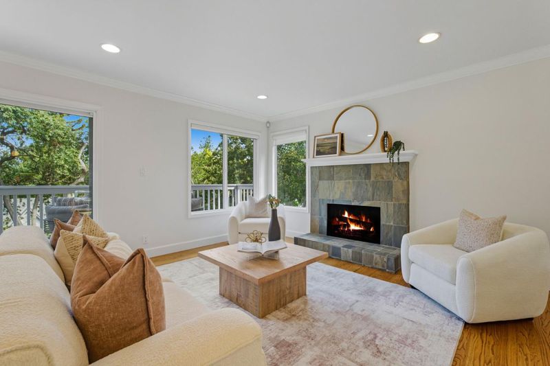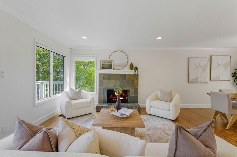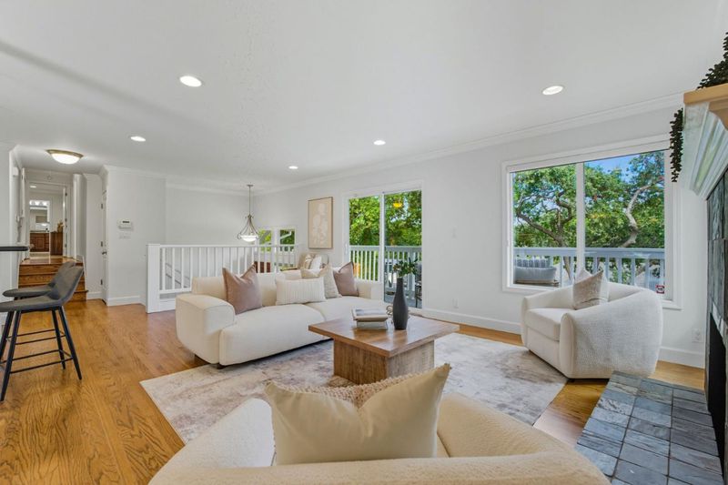Tucked away on a quiet, tree-lined street, this beautifully appointed 3-bedroom, 2-bath split-level home offers incredible privacy, coupled with comfort and contemporary design. The open floor plan showcases gleaming hardwood floors and a seamless flow between living areas - ideal for both entertaining and everyday living. A spacious living room with a wood-burning fireplace and large picture window invites natural light and warmth, while the adjacent dining area opens to a thoughtfully updated kitchen featuring marble countertops, stainless steel appliances, and a convenient breakfast bar. All bedrooms and baths are located down the hallway for optimal privacy, including a serene en-suite retreat with a walk-in closet. Additional highlights include a two-car garage and a drought-tolerant yard with artificial grass lawn, perfect for play, outdoor entertaining, or quiet relaxation. Walking distance to Roosevelt Plaza, Key Market and Red Morton Park! Minutes to thriving Downtown Redwood City with restaurants, shops, theaters and Caltrain. Ideally situated between 101 and 280 freeways, this home offers comfort and accessibility.