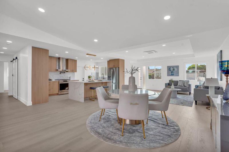 Top-to-bottom modern luxury at 1759 Higgins Ave, all one level extensively remodeled with full city permits in the heart of Santa Clara with higher than normal ceilings for an extra premium feel most buyers want. Unparalleled proximity to NVIDIA HQ, Apple, and major tech hubs, ideal for a short commute or bike ride. Enjoy a quiet, friendly neighborhood just minutes from the Moonlite Shopping Center, grocery stores, and top-rated schools like Wilcox High. The interior luxury hybrid resilient vinyl flooring and smooth drywall throughout. The chef's kitchen is a showstopper with Calacatta Quartz countertops, an island with waterfalling Quartz on both sides, and premium LG stainless appliances, including a gas range with a pot filler. Retreat to the newly added primary suite, complete with a walk-in closet and spa-style en suite. Dramatic panoramic bi-fold doors create a seamless transition to the professionally landscaped backyard. Modern upgrades include a new 200-amp panel, tankless water heater, and individual mini-split A/C units in every room. The exterior showcases a new 2026 asphalt shingle roof, smooth stucco light color finish, newly poured concrete new pavers, and a two-car garage with epoxy flooring. This home offers sophisticated living in an unbeatable location.