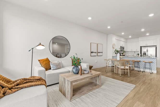 Built in 2019 & still feeling like new, this bright & spacious home offers an open floor plan filled with natural light. The modern kitchen features white cabinetry, quartz countertops with a breakfast bar, soft-close cabinets, & stainless steel appliances, including a gas oven/cooktop. The primary suite includes a generous walk-in closet & a luxurious en-suite bathroom with a dual vanity & walk-in shower. A balcony off the living room & primary suite provide additional space for relaxing or entertaining guests. Smart home features include a smart doorbell & smart thermostat. With CAT6 wiring & AT&T Fiber ready, the home is perfectly set up for working from home. The building is secure and includes two assigned parking spots in the garage, along with access to an EV charging station. Residents enjoy access to a 12,000 sq ft luxury clubhouse offering a resort-style pool, spa, gym, weight room, yoga room, multiple lounges, cozy fireplaces, & an event center available for private rentals. The community also features BBQ & picnic areas, a playground, & community garden. The HOA covers all these amenities, as well as garbage & natural gas. Ideally located near parks, shopping, dining, & outdoor recreation, with quick access to Highways 85 & 101 and the VTA Light Rail. Welcome Home!
