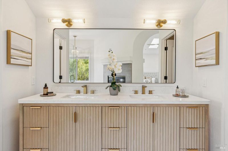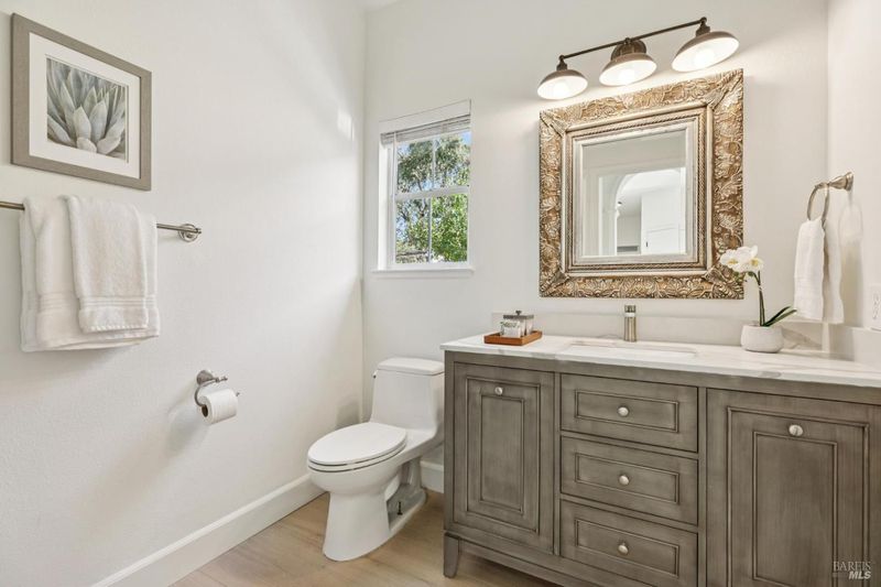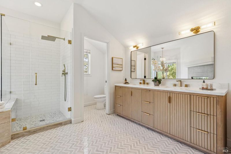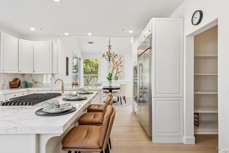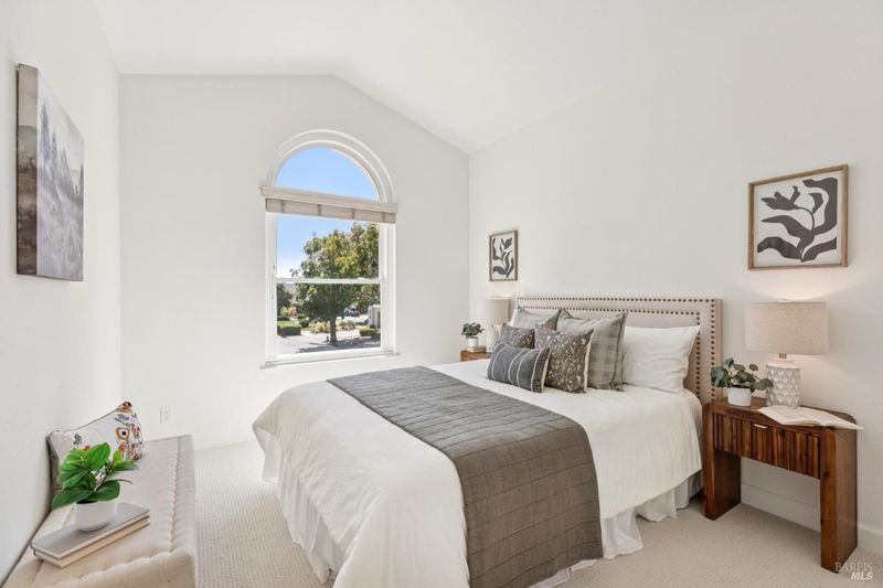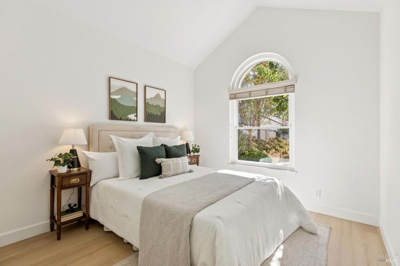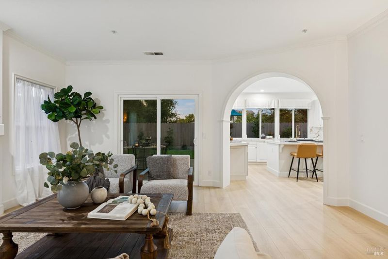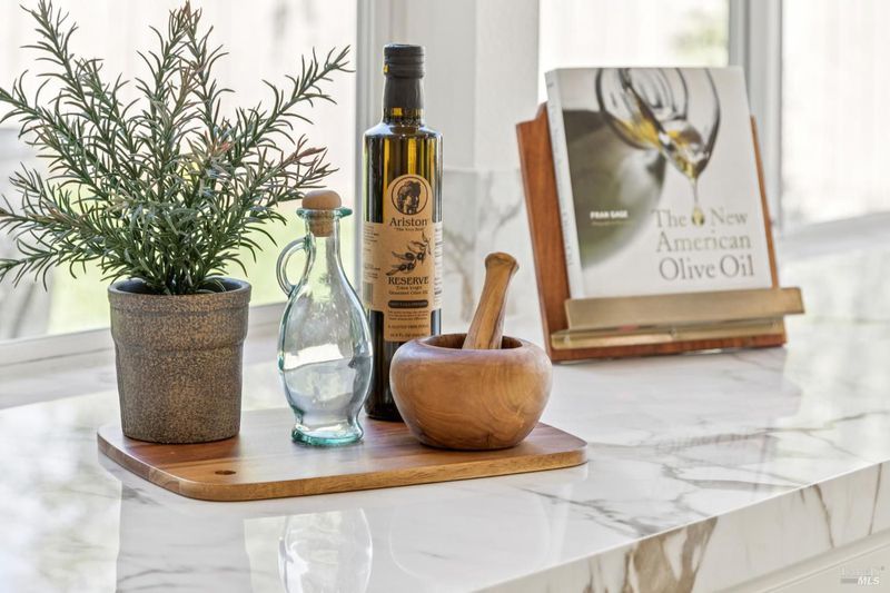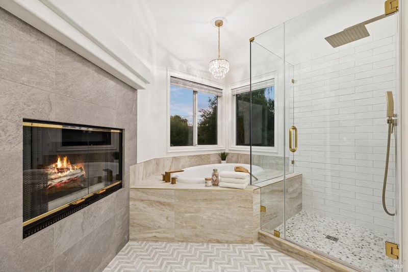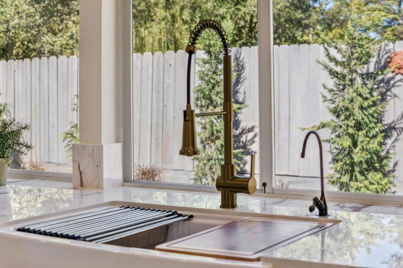 Tucked away at the end of a cul-de-sac in desirable North Napa, this elegant light-filled home is a show-stopper. With its soaring ceilings and 5 +/- foot-tall kitchen windows overlooking the park-like back yard, this home brings the outdoors in. A dreamy kitchen features an abundance of new porcelain counter space, a center island, a workstation sink, new KitchenAid gas stovetop, built-in fridge and walk-in pantry. The kitchen is open to both the family room and the living/dining rooms. Living and dining spaces are enhanced with wainscoting and a gas fireplace. Perfect floorplan with a high-ceilinged bedroom and full bath on the main level, and 3 more BRs upstairs, including the elegant primary suite. The recently remodeled primary bathroom's double-sided fireplace & soaking tub create a relaxing retreat. In the back yard, there's a new pergola with party lights on one side, and a veggie garden on the other. A neighborhood playground is accessible from the back gate and is just a few yards away. Too many upgrades to list, including a new HVAC system. A 3-car garage and RV parking are the icing on the cake. Hop on the Vine Bike Trail, just a few blocks away, and head to Yountville! Just 3/4 mile to one of Napa's most beloved restaurants. This is the ideal Napa Valley lifestyle!