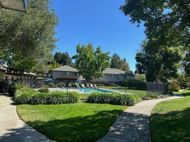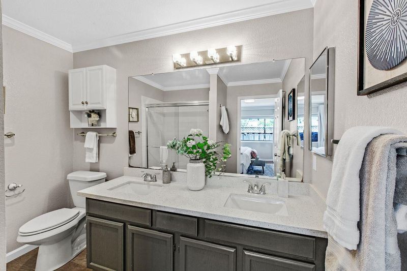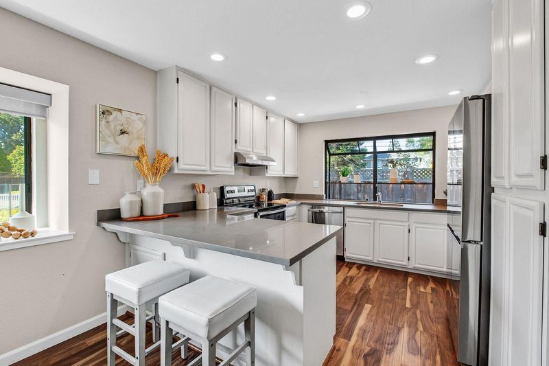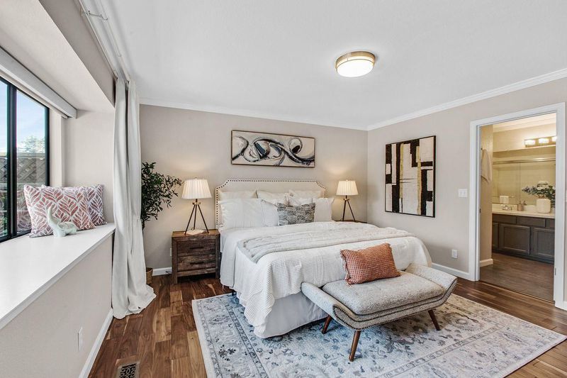 A Hidden Gem! Welcome to 1227 Chantal Way in Greenhouse Gardens of Redwood City. Truly a rare 1,350 square foot, single story, 2 bedroom, 2 bath home that lives like a single-family home with an attached 2-car garage (no one above, no one below, only one attached wall). As you enter, you will be greeted by the large formal entry way opening to the living room with vaulted ceilings, used brick wood burning fireplace, separate dining area, breakfast bar, gorgeous kitchen and direct access to your backyard with double fixed glass panels and double glass doors. The floors are finished with a handsome, rich engineered hardwood floor. Incredibly spacious rooms throughout with wide windows that offer plenty of natural light. The bay/box windows in the dining room and both bedrooms make for a unique and attractive accent. The kitchen is finished with white cabinetry, soft grey countertops, stainless steel appliances and a garden window for your plants. Both bedrooms are huge and have two sets of double closets each. The primary bedroom has a private bath with dual sinks making it easy to share. The HOA has a beautiful inner-park with a lush lawn, pathways, and a secure pool area with seating and lounges. The perfect place for a quick respite or spend the day with family and friends.