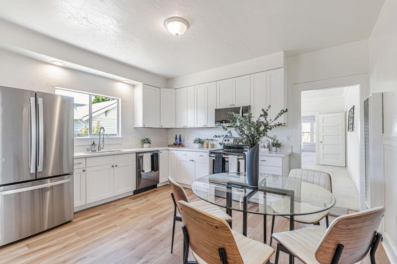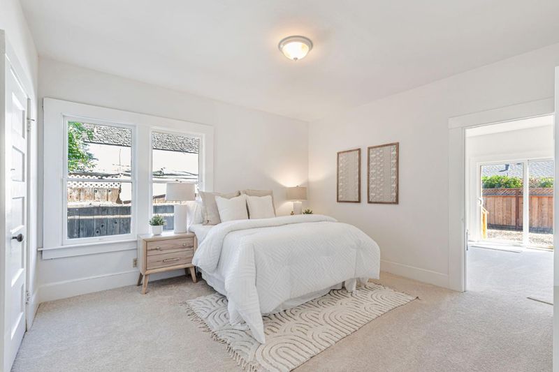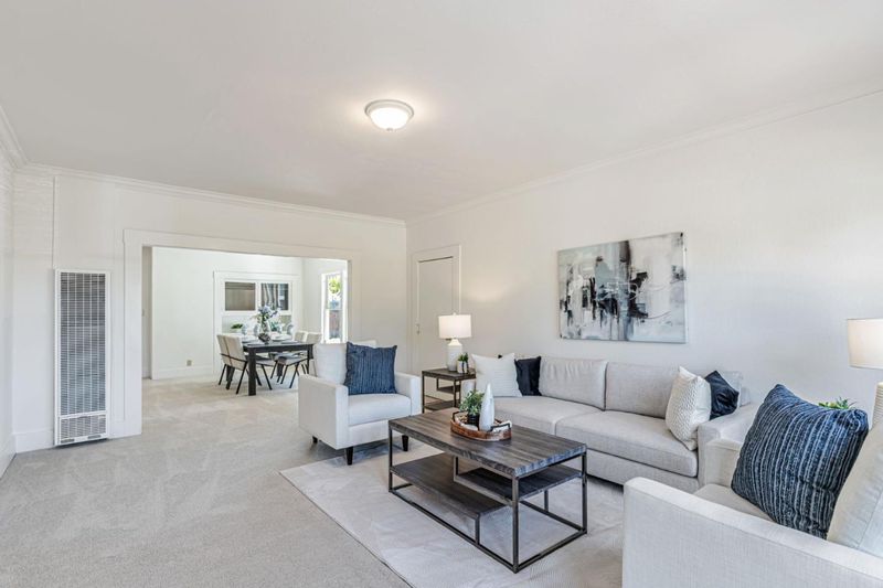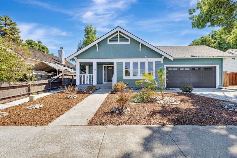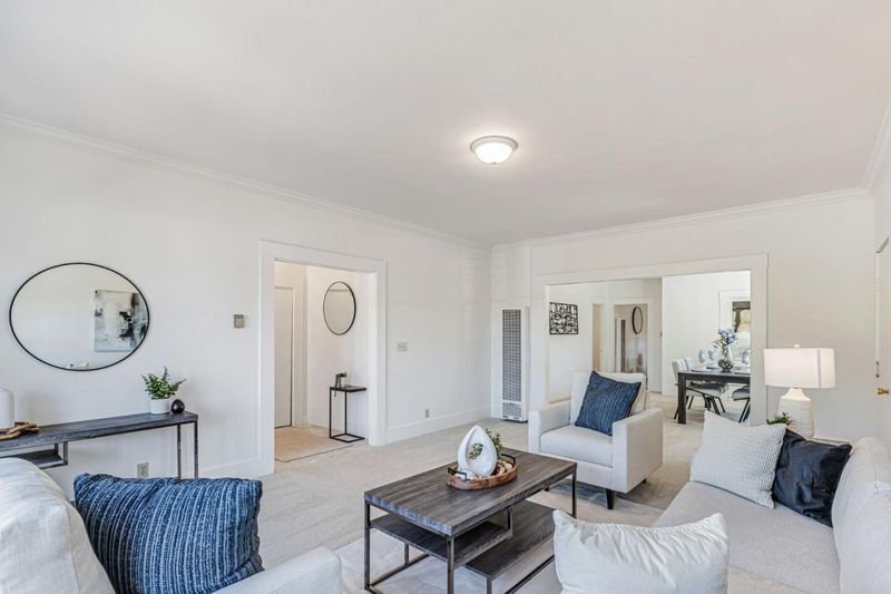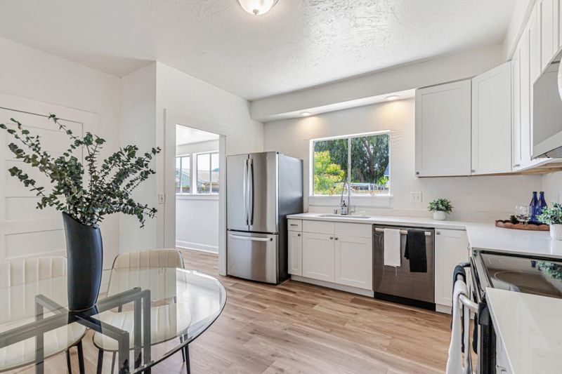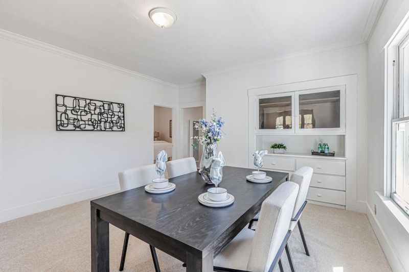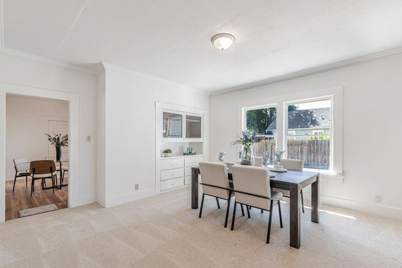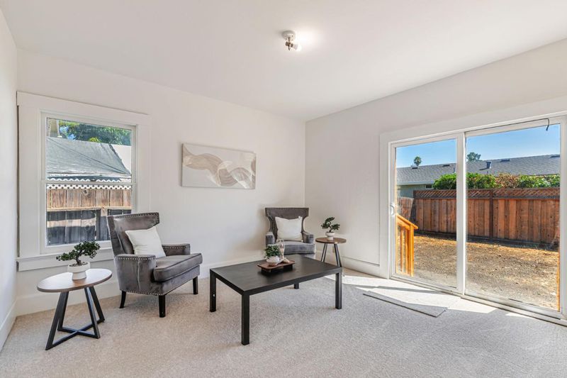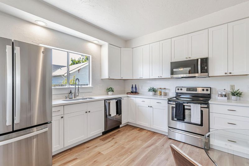 Incredible Opportunity in Morgan Hill! A perfect blend of modern comfort and timeless appeal. The beautifully landscaped front yard provides a welcoming entry into a bright, open-concept living space. Inside, crisp white walls and plush, light-colored carpeting create a clean and spacious feel. The living room, bathed in natural light, flows seamlessly into the dining area, which features a built-in cabinet with elegant glass doors for functional storage. The heart of the home is an updated eat-in kitchen that boasts shaker cabinetry, sleek stainless appliances and luxury plank flooring. The bright and inviting bedrooms continue the tranquil aesthetic with large windows and comfortable new flooring. Additional amenities include a dedicated laundry room, a garage area with ample room and storage shelving ideal for your workshop. The spacious rear yard is a blank slate for your outdoor living vision or ample room for an ADU. This home combines a thoughtful floor plan with tasteful modern updates, creating a truly move-in-ready sanctuary.