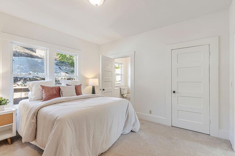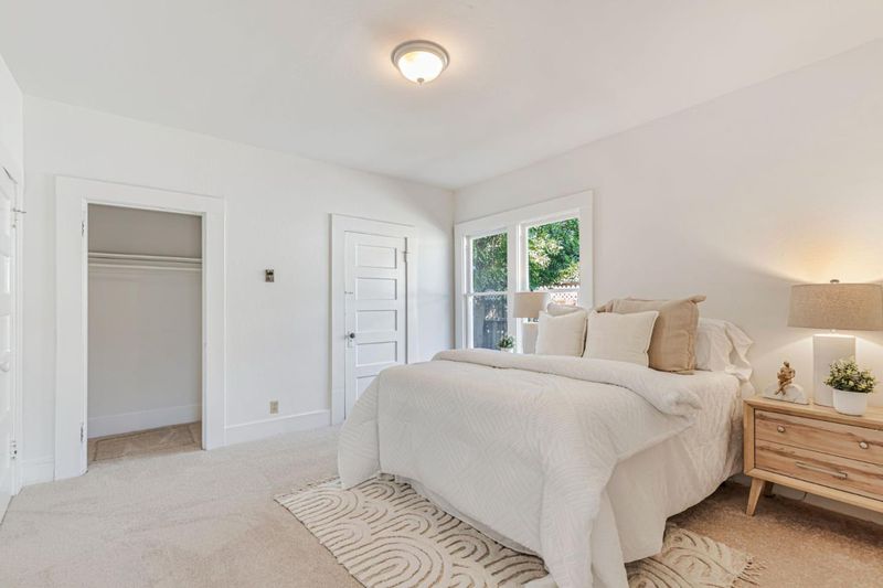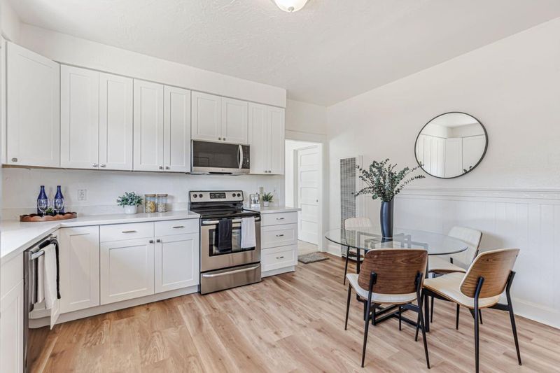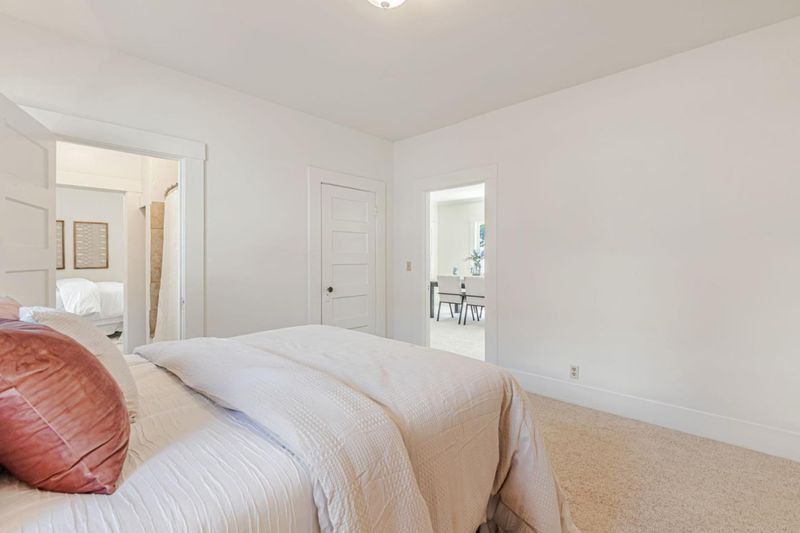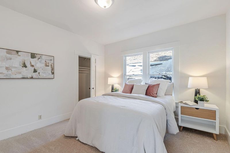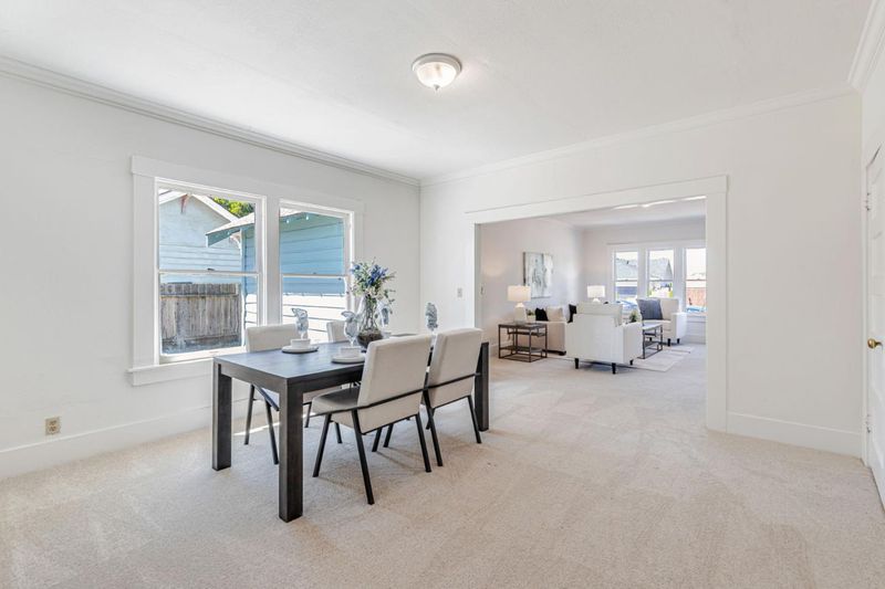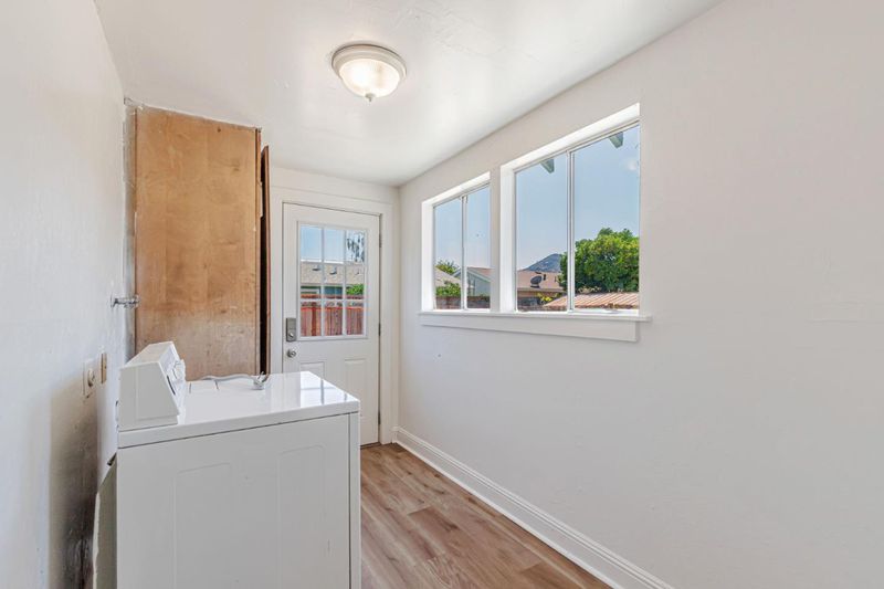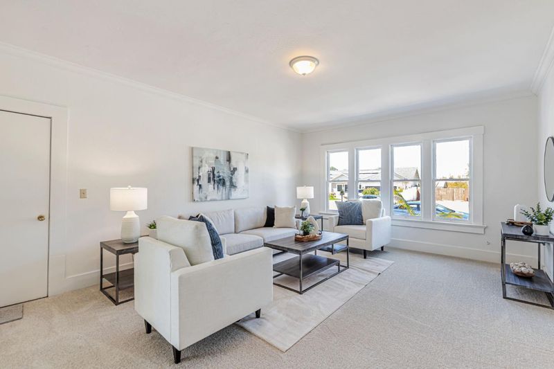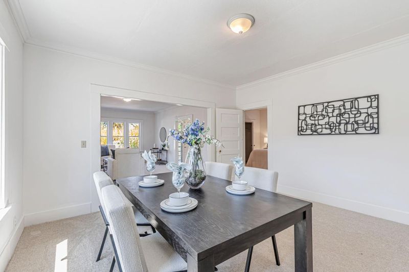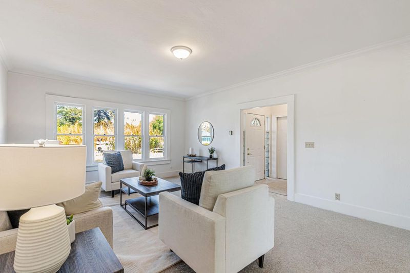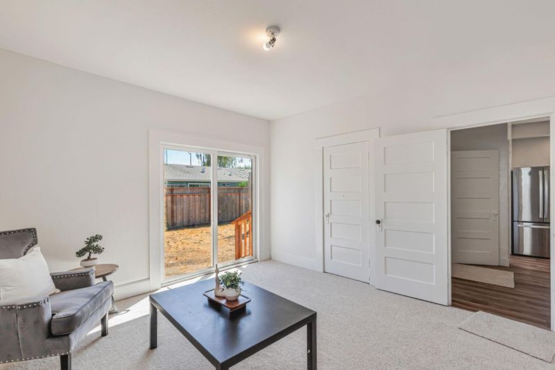 Incredible Opportunity in Morgan Hill! A perfect blend of modern comfort and timeless appeal. The beautifully landscaped front yard provides a welcoming entry into a bright, open-concept living space. Inside, crisp white walls and plush, light-colored carpeting create a clean and spacious feel. The living room, bathed in natural light, flows seamlessly into the dining area, which features a built-in cabinet with elegant glass doors for functional storage. The heart of the home is an updated eat-in kitchen that boasts shaker cabinetry, sleek stainless appliances and luxury plank flooring. The bright and inviting bedrooms continue the tranquil aesthetic with large windows and comfortable new flooring. Additional amenities include a dedicated laundry room, a garage area with ample room and storage shelving ideal for your workshop. The spacious rear yard is a blank slate for your outdoor living vision or ample room for an ADU. This home combines a thoughtful floor plan with tasteful modern updates, creating a truly move-in-ready sanctuary.