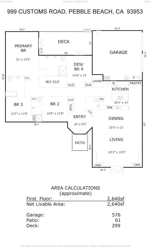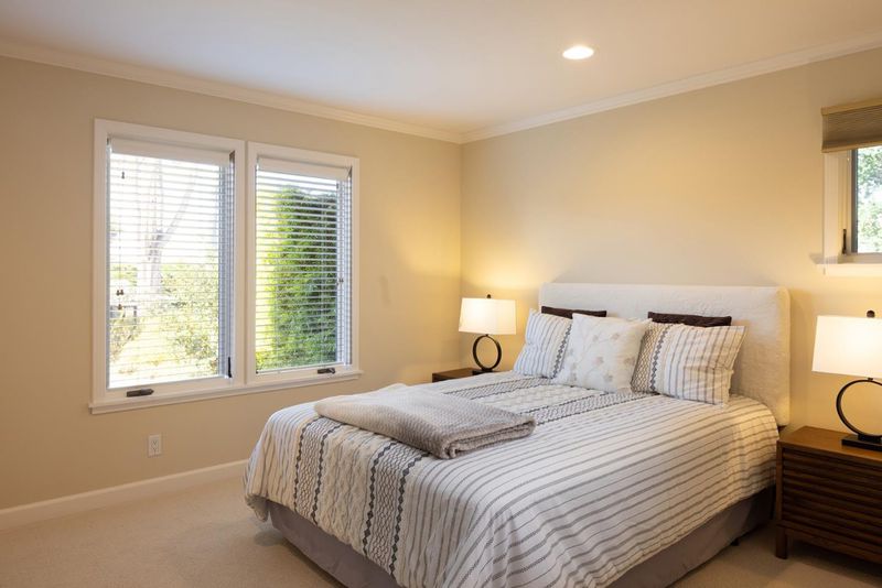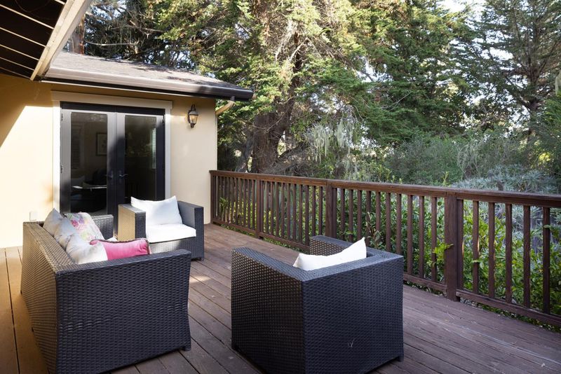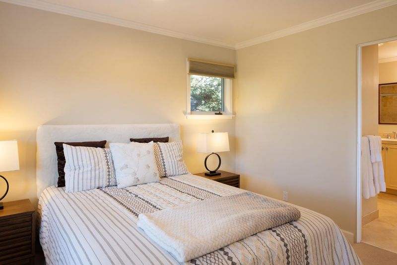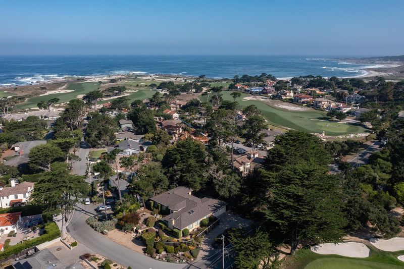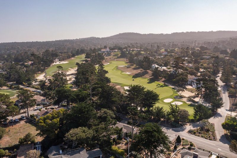 This single level Pebble Beach Country Club West home is desirably located on a corner lot just blocks from the ocean & iconic 17 Mile Dr, and across the street from MPCC Shore Course #1 green with the clubhouse also mere blocks away. It was taken down to the studs in 2005 resulting in an inviting open floor plan with beautiful neutral finishes throughout. Striking formal entry with high ceiling opens to a 600+ sqft great room encompassing the living and dining areas with cathedral ceiling, natural light streaming in through skylights and tall windows, cozy fireplace, and eat-at bar open to the kitchen. Chefs delight kitchen includes island with gas cooktop, double ovens, beautiful cabinetry, abundant countertop areas and storage. Spacious primary suite has vaulted ceiling, large walk-in closet, oversized bath with shower stall & stone finishes, and French doors opening to back deck. Two guest bedrooms are each ensuite, and den/4th bedroom has a closet with French doors to back deck. Beautifully landscaped front yard is fully fenced as is back yard which is very private with open space behind. Deep 2-car garage has laundry sink and an EV charger. Don't miss out on the opportunity to live the Pebble Beach lifestyle in this move-in ready home!
