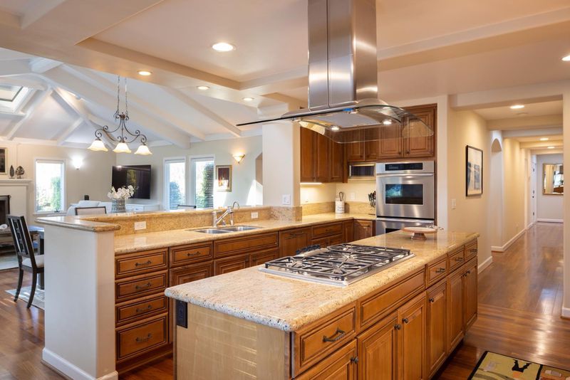 - Cooktop - Gas, Garbage Disposal, Island, Microwave, Oven - Built-In, Oven - Double, Refrigerator, Wine Refrigerator