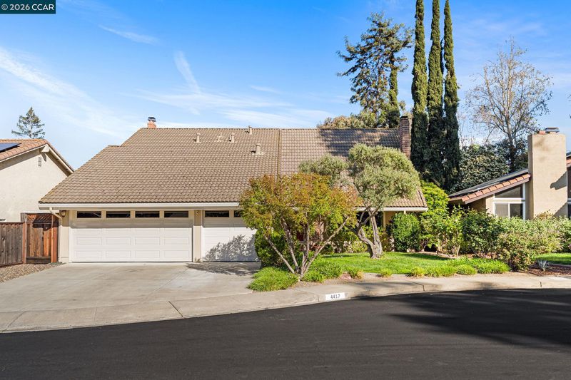 Tucked away on a quiet cul-de-sac, 4417 Catalpa Court offers the perfect blend of style and functionality in a beautifully updated two-story home. Featuring 4 bedrooms, 3 bathrooms, and 2,330 sq ft, the home showcases rich oak hardwood floors on the main level and brand new carpet upstairs. Formal living and dining rooms, along with a spacious family room, provide flexible living and entertaining spaces, with fireplaces in both the living and family rooms. Dual pane windows and central heating and air ensure year-round comfort. The updated kitchen features new Dekton countertops and appliances, a wet bar, and flows seamlessly into the main living areas. Wood-framed sliding doors bring in natural light and open to the backyard. Upstairs, four bedrooms offer comfort and privacy, including a primary suite with vaulted ceilings, a large walk-in closet with new built-ins, and an updated bathroom with a spacious stone shower. The backyard features a deck, pergola, and mature landscaping. Additional highlights include an exterior storage shed and a motorized stairway for convenient storage above the garage. Located in The Crossings between Walnut Creek and Clayton, with access to pools, tennis and pickleball courts, clubhouse, dog park, and close proximity to BART and shopping.