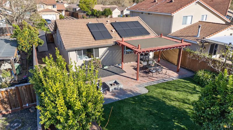 This sweet single level located on the coveted eastside of Windsor, is just what you've been waiting for! Enjoy a glass of lemonade on your covered front porch and watch the littles play in the cul-de-sac. Upon entry, you a greeted by a vaulted ceiling and open floor plan into the updated kitchen. The dining room has a sliding back door out to the patio, ideal for al fresca dining. Down the hall you will find an updated hall bathroom and two bedrooms, one lives as an office. The primary suite has a separate vanity, walk-in closet and separate shower. Citrus abounds in the front and back yards with low maintenance and drought tolerant landscaping. Owned solar is an added amenity providing efficiency and comfort on hot summer days. Relax in your private back yard complete with a firepit, patio and pergola. Welcome home!