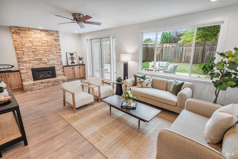 Welcome to this beautifully updated single-level home in East Petaluma. Offering 3 bedrooms and 2 bathrooms, this residence features a remodeled kitchen with modern finishes and a spacious primary suite. The primary bedroom provides a relaxing retreat with ample room for a sitting area, a walk-in closet, and a luxurious en suite bath complete with a steam shower. The open floor plan flows easily for everyday living and entertaining, with French doors leading to the backyard for seamless indoor-outdoor enjoyment. Additional highlights include air conditioning and a whole-house water filtration system, making this home move-in ready and designed for comfort and convenience.