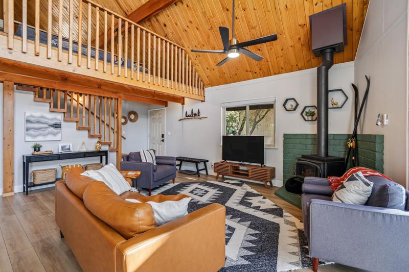 This is a hard to come by updated A-frame cabin with a tall floor to ceiling glass/windows wall and unobstructed mountain views. The home is fully updated and offers lots of space on 3-levels. Large upstairs loft, 2 bedrooms on main level, bonus room downstairs and 3 full bathrooms (one on each level). Improvements include a remodeled kitchen, three updated bathrooms, energy efficient mini split systems for cooling and heat, dual pane windows, LVP flooring, new whole house generator, composite decking and more. Unlike many homes in the area, this one offers a large level driveway with plenty of parking for your guests and toys. RVs and boat will all fit here! Surrounded by tall pines the cabin is ready for full time personal use but is also a desirable weekend getaway short term rental AND most furnishings can stay. Enjoy all that Pine Mountain Lake has to offer - swimming, boating, fishing, hiking, bicycling, tennis &pickleball, stables, gun range, campground and an 18-hole championship golf course plus country club for your dining and entertainment pleasure. Groveland is about a 2.5hrs drive from many locations in SF Bay area or you can fly into Pine Mountain Lake airport in about 45mins! Yosemite National Park is just 25 miles up the road.