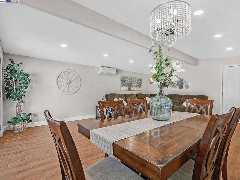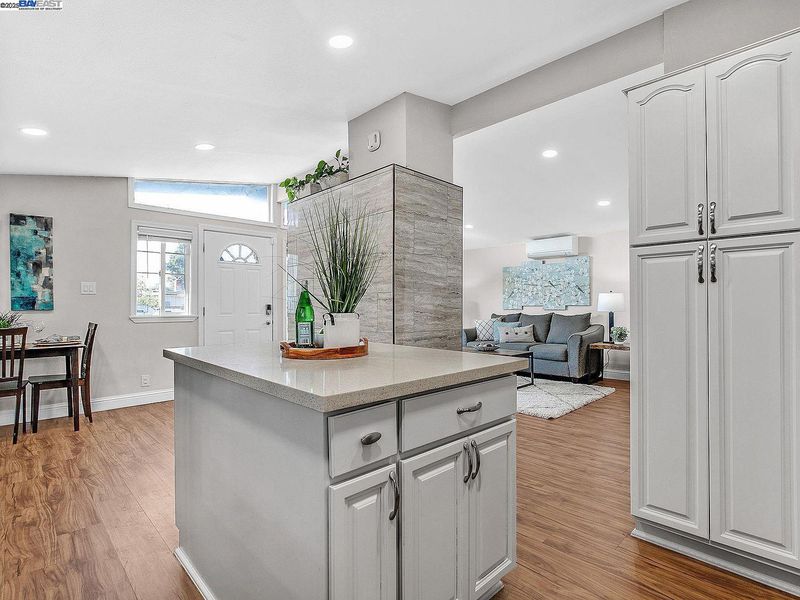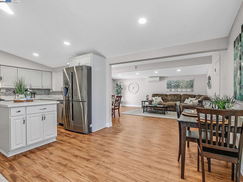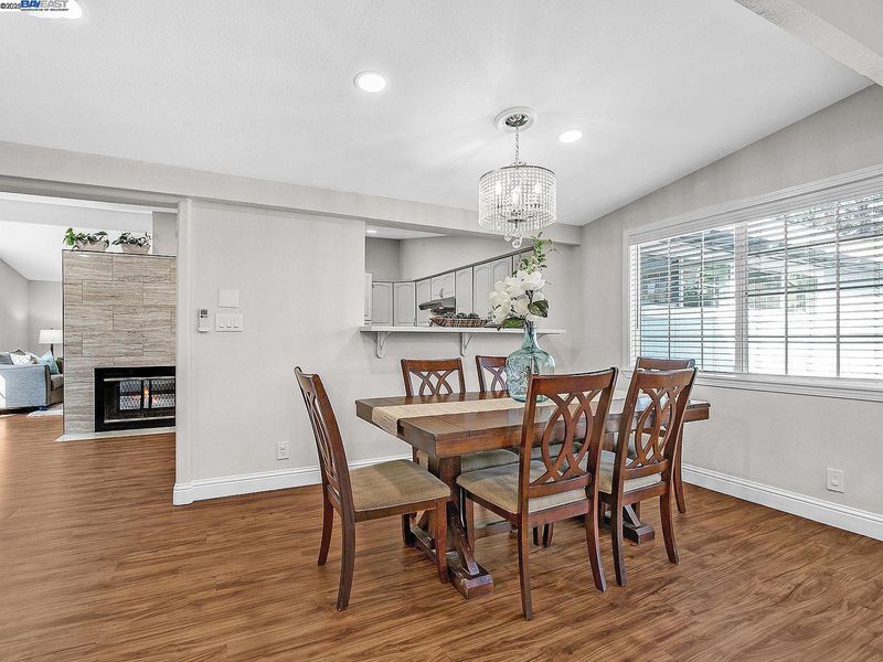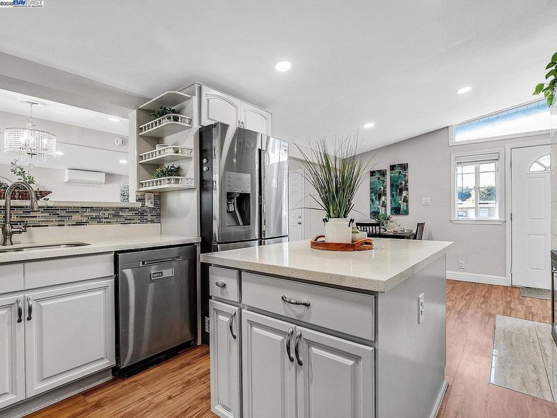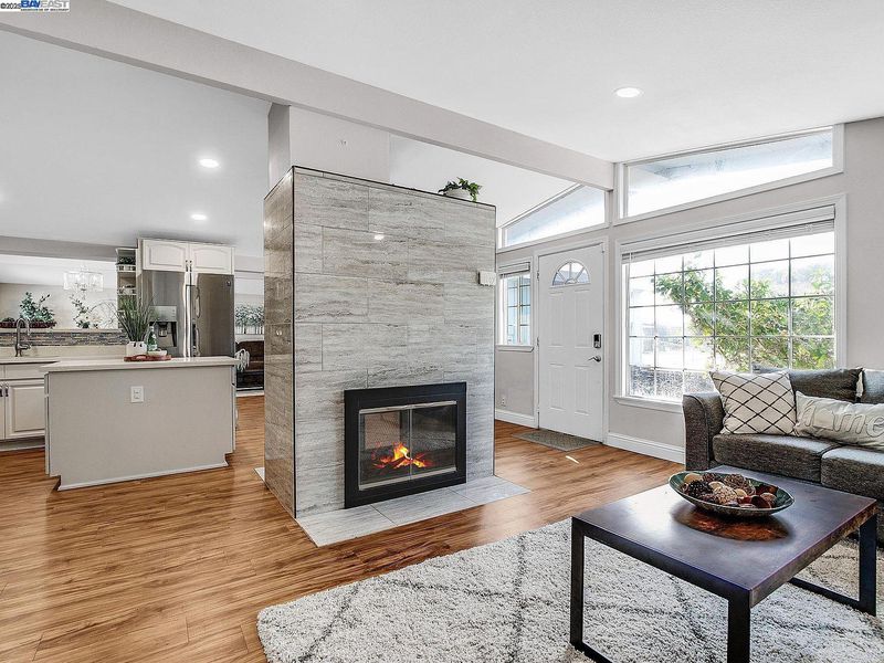 Step inside this updated Single Story Home with Gorgeous Eat In Kitchen, including Quartz Countertops, Beautiful Tile Backsplash, Stainless Steel Appliances with Gas Cook top Range, Vaulted Ceilings, and Island. Large Family Room with Dining Area is Adjacent to the Kitchen. Two Way Custom Tile Fireplace to Living Room/Kitchen Area. Three Bedrooms, Two Recently Updated Fantastic Bathrooms with Solid Surface Counters and Custom Tile. New Paint, Recessed Lighting, and Split Duct HVAC System that heats, cools and dehumidifies! Fenced Front and Back Yards with Patio Area and fruit trees.